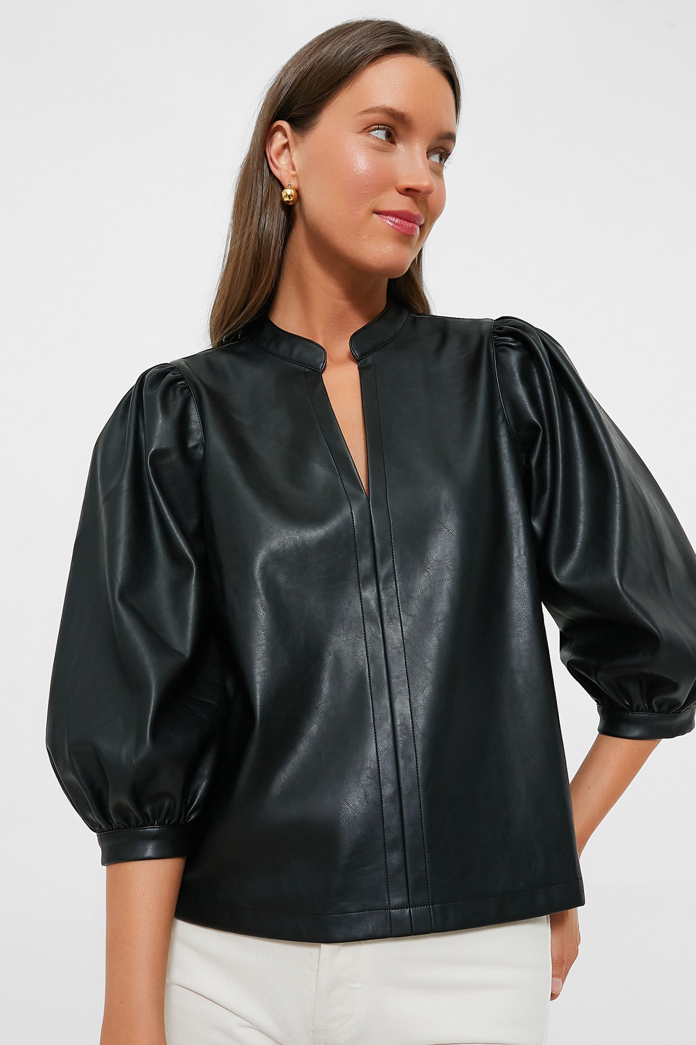 Black Leather Ashlen Blouse