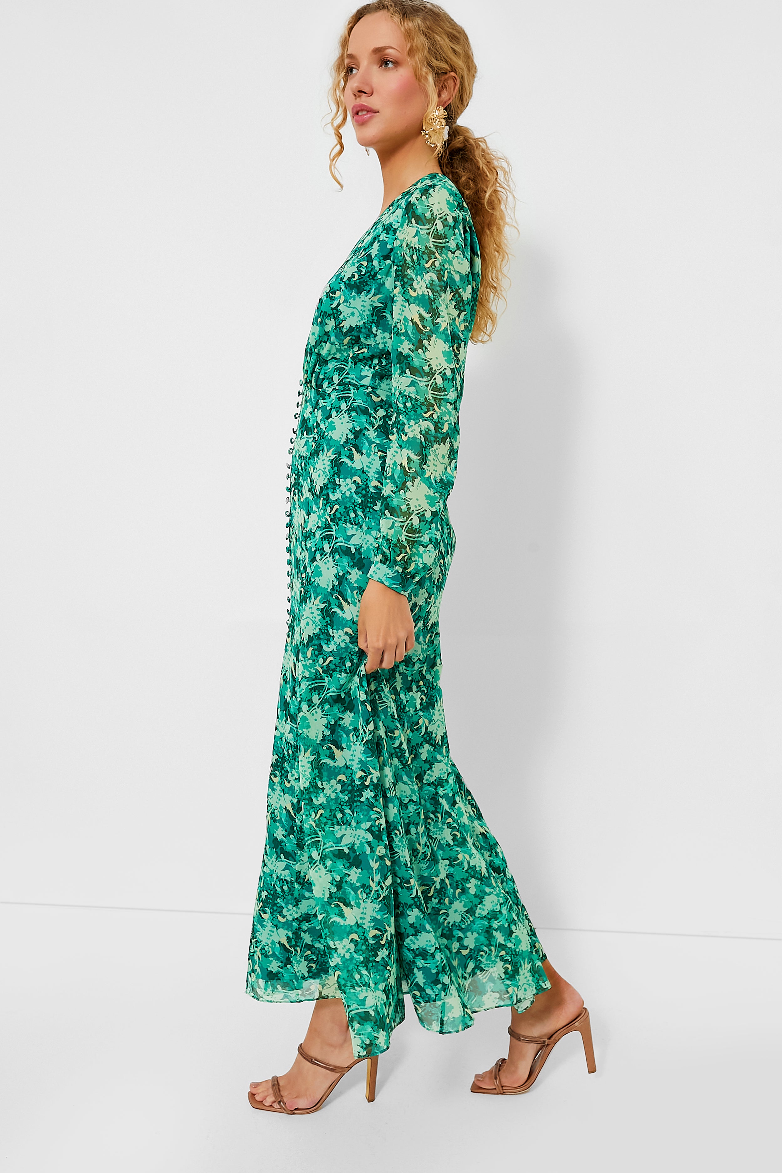 A dress designed to effortlessly carry you through countless events. the Amarylis Mint Annabel Dress is as elegant as it is eye-catching. This midi bosts a fitted waist and full-length skirt with a thigh-high front slit. Pair with metallic heels and a clutch for a touch of glam. or opt for neutral accessories to let the pattern shine.