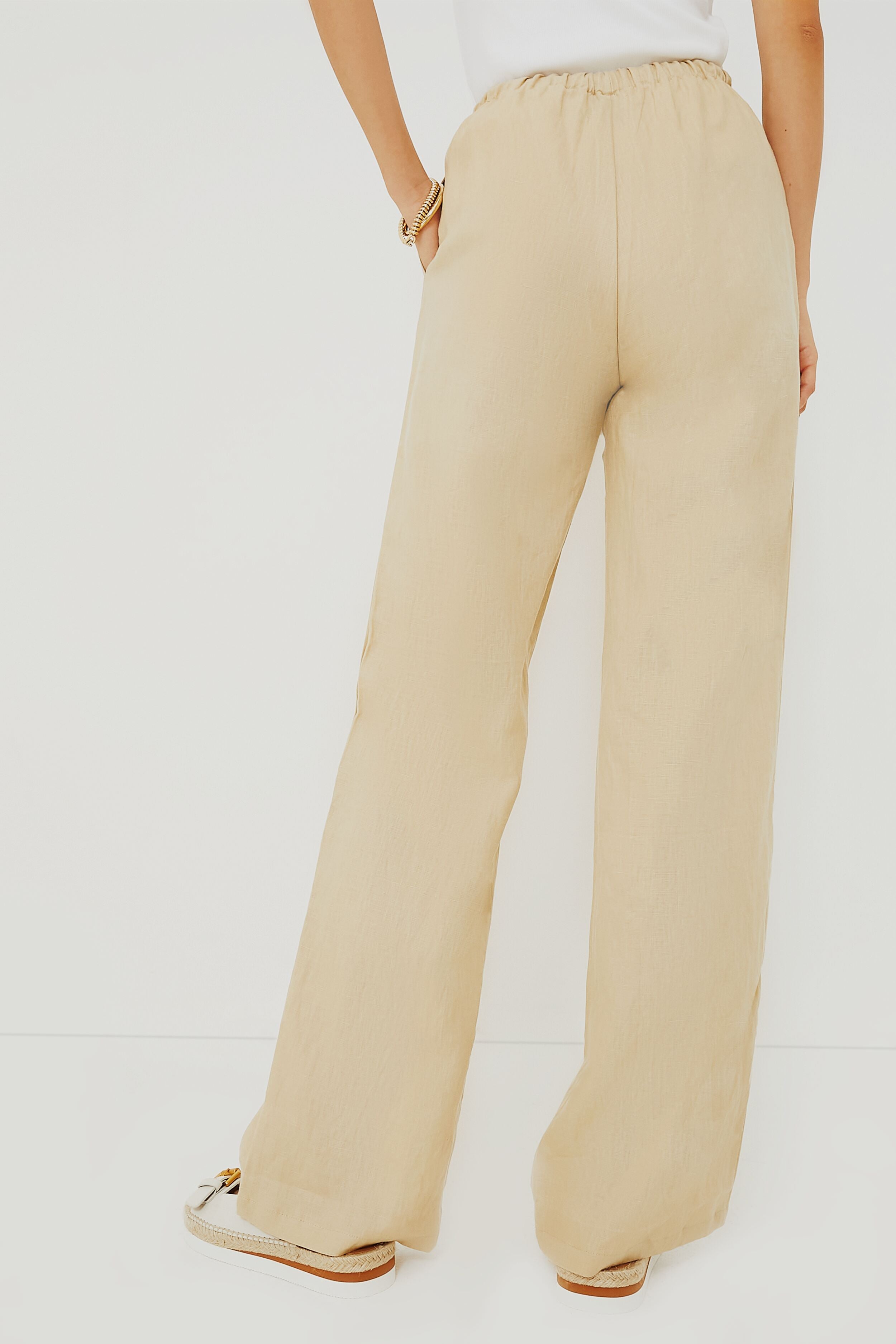 Whether you're jet setting to an exotic locale or cruising the local spots. the Beige Drawstring Pants will keep you chic! Lightweight linen fabric creates these breezy pants and their high-waisted fit with wide leg silhouette ensures wear-all-day comfort.Versatile as ever and ready for repeat-wearing. all you have to do is add a tee and a hat for a casual. cool-girl feel. or pair them with a linen top for a head-to-toe look that's made for summer.