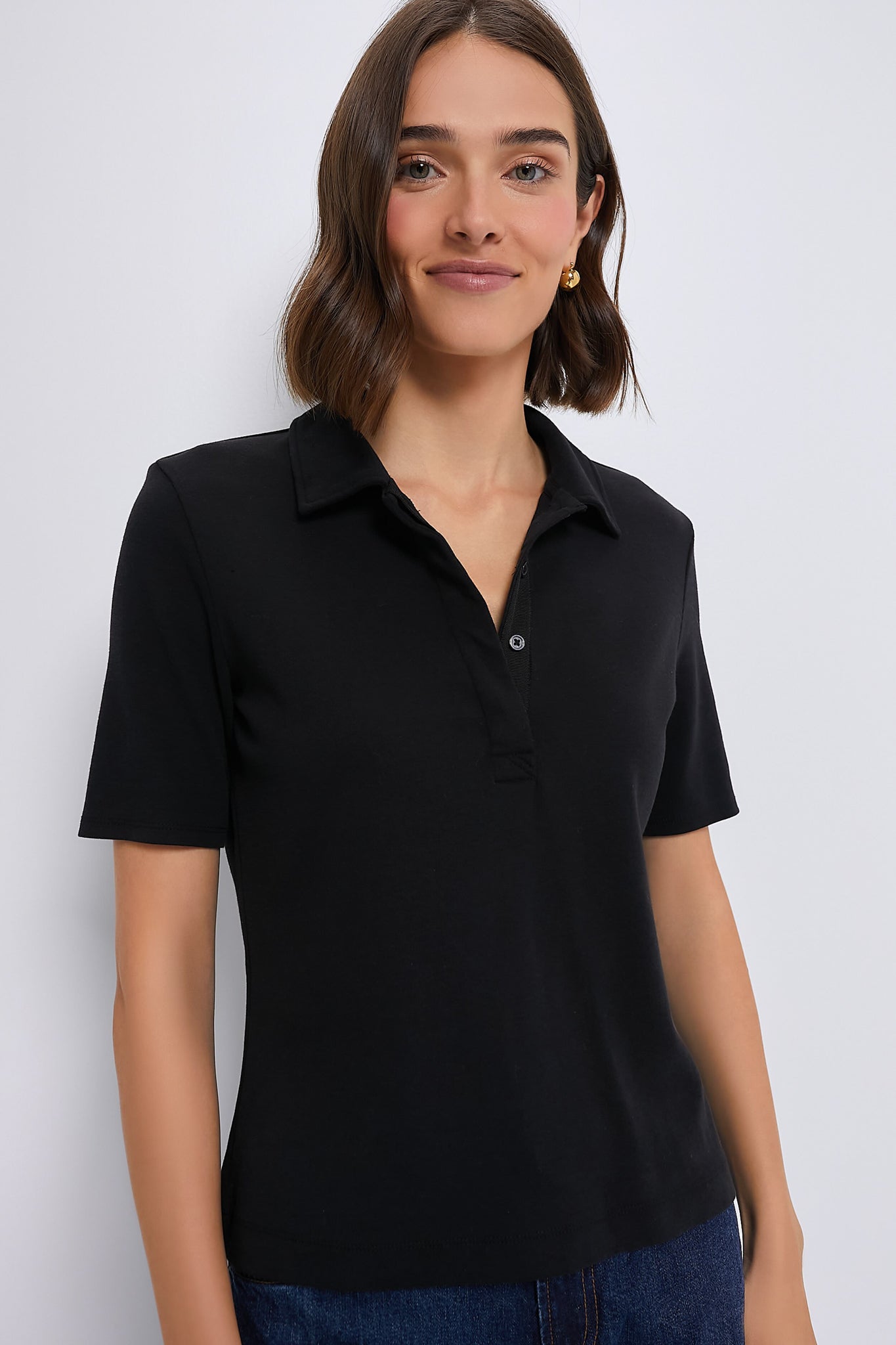 The most elevated of basics. the Adler Interlock Polo is simply a must-have style. Crafted from the softest fabric you've ever felt. this classic top features luxe details such as a thick double fused collar and a hidden front three-button placket with grosgrain ribbon trim. Designed to offer a slim fit that is polished without compromising comfort. you can dress it up or down endlessly. Pair this neutral number with a tweed blazer and trousers for the office. or with sleek denim and statement earrings for a dinner date.