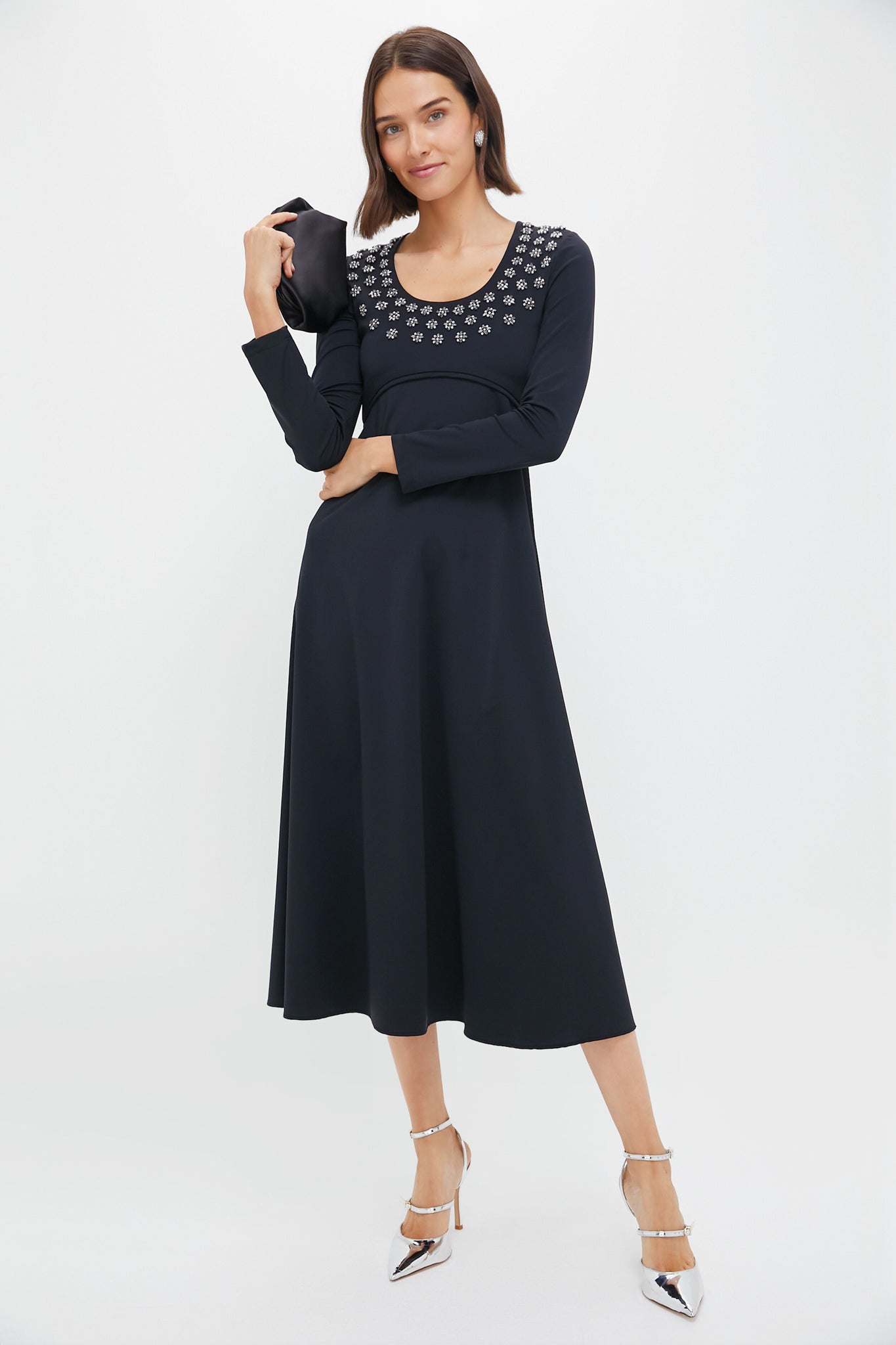 The Caryl Dress is a stunning dress for your next occasion. Featuring a scoop neckline. rhinestone and pearl detailing. and empire waistline. you cannot go wrong with this chic silhouette. We recommend pairing with an evening clutch and silver heels for the perfect look!