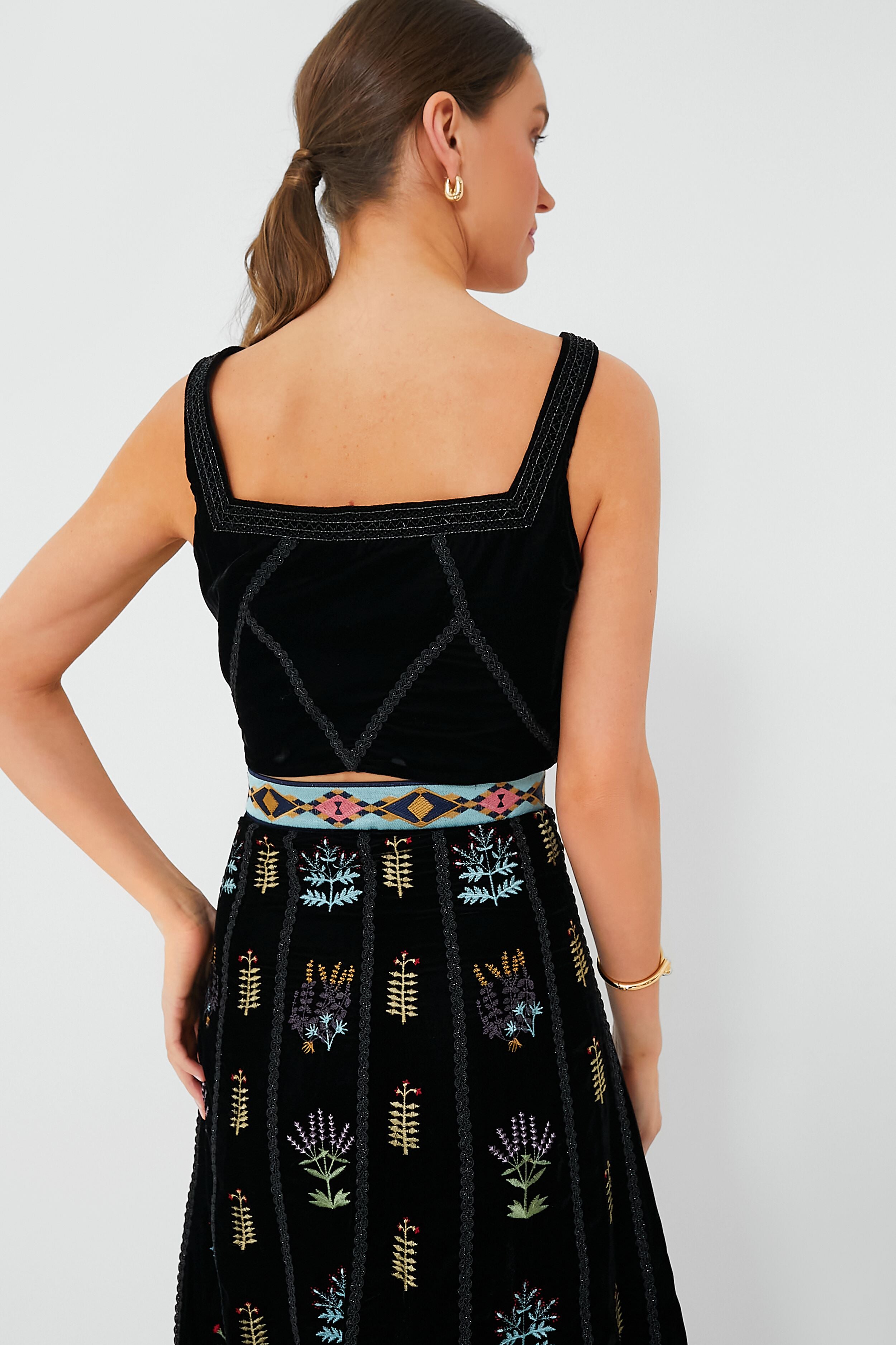 The Black Cindarella Agra Embroidered Top is a romantic. eye-catching top that can be worn to the beach. to date night. or to a weekend picnic date. With a flattering square neckline and intricate embroidered detailing. this top brings refined glamour to any occasion. Pair with the Black Camille Agra Embroidered Skirt for a chic matching set. or pair with denim and sneakers for a more causal approach.