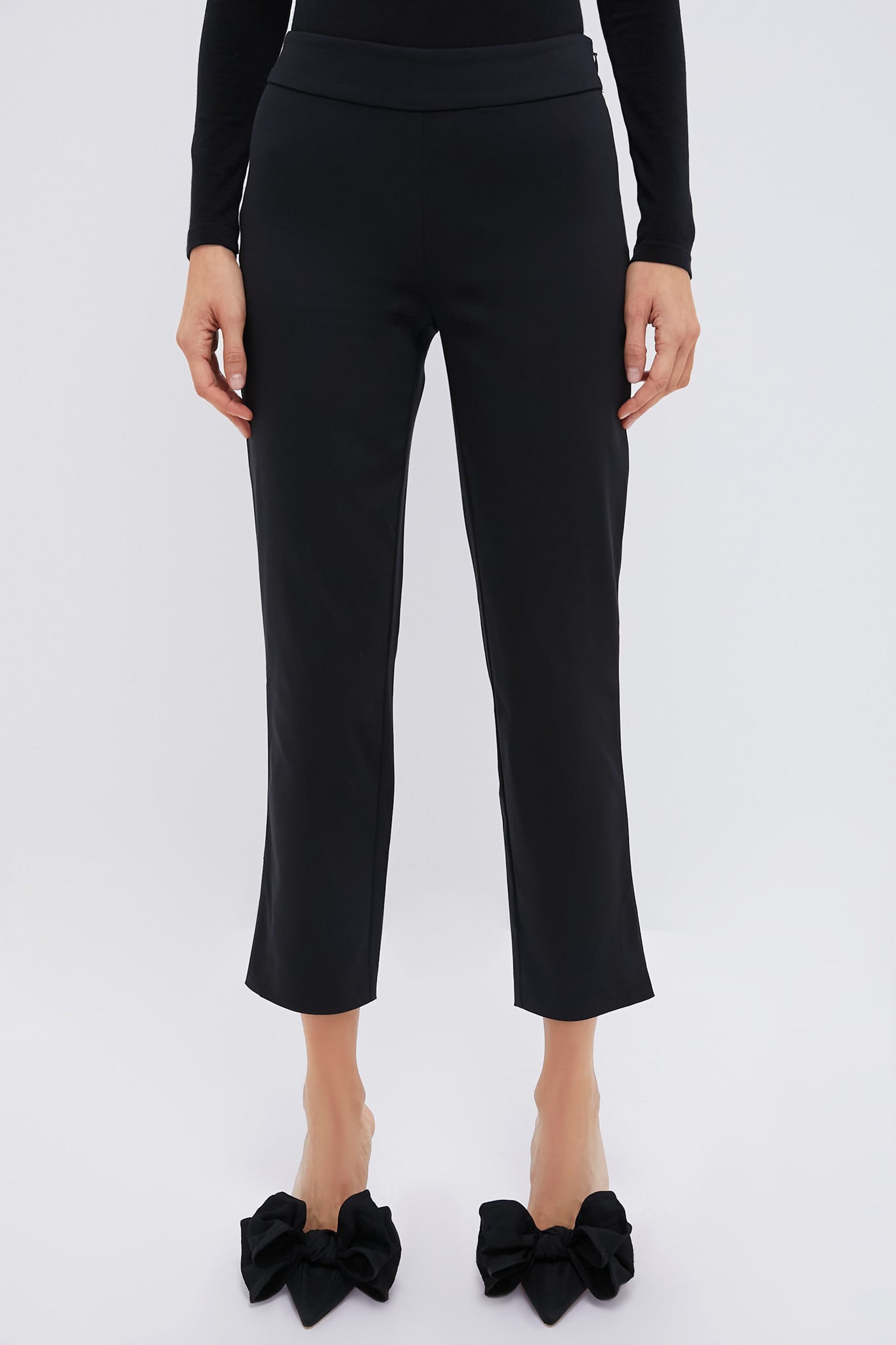 The Hunter Pant is the perfect versatile pant for your wardrobe. Featuring a slim fitting silhouette with a cropped leg and side zipper. these pants will take you from the office to after work drinks with ease! We styled them with a black cashmere sweater. fun bow heels. and a silver clutch.