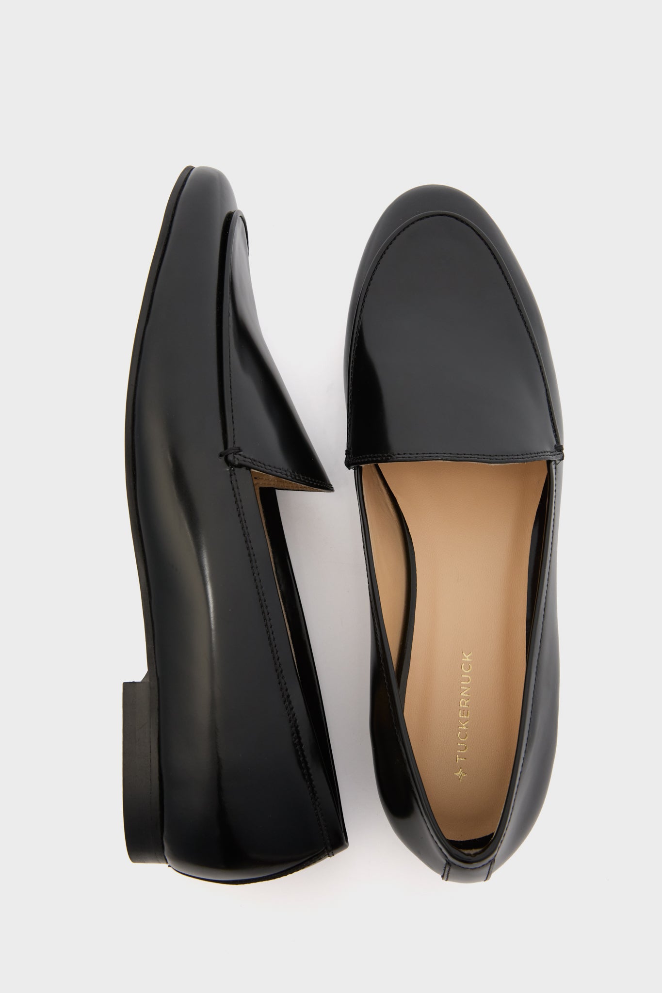 Say hello to your new closet staple. the Black Leather Rowan Loafers. Made from a high-quality smooth leather. these sleek beauties will seamlessly take you from desk to drinks with their elevated silhouette and low stacked heel. Pair with trousers and a blazer or opt for casual denim and a sweater.