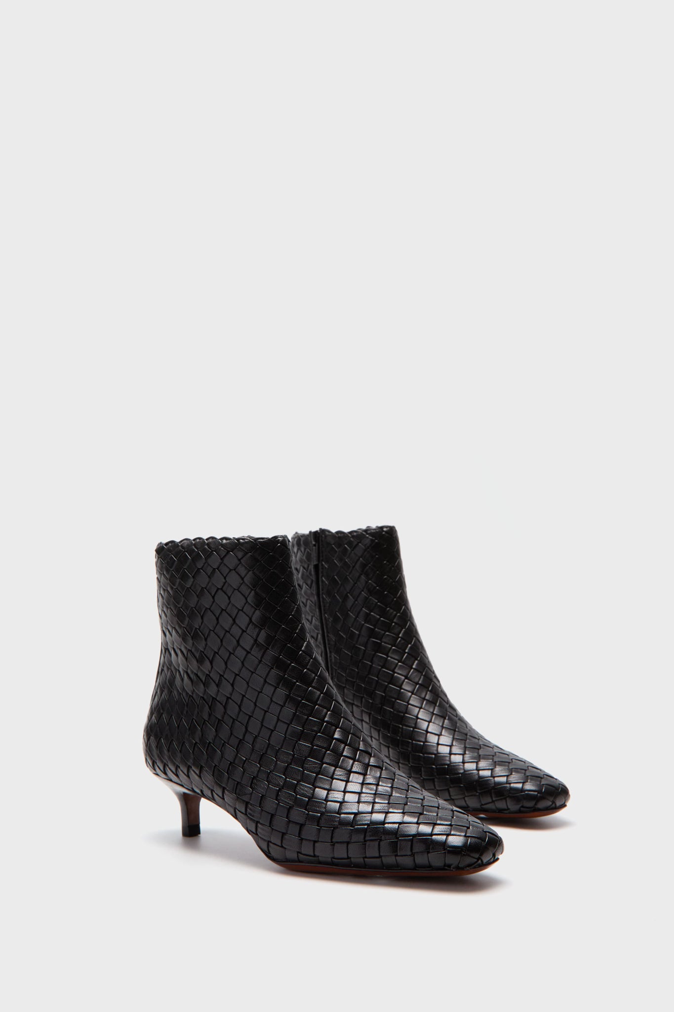 The Black Marcella Ankle Boots are classic beauties that are a staple for your wardrobe. The sleek elongated square toe. short kitten heel. and woven construction create a subtle. yet eye-catching look. Pair with wide leg denim and sweaters or maxi dresses!