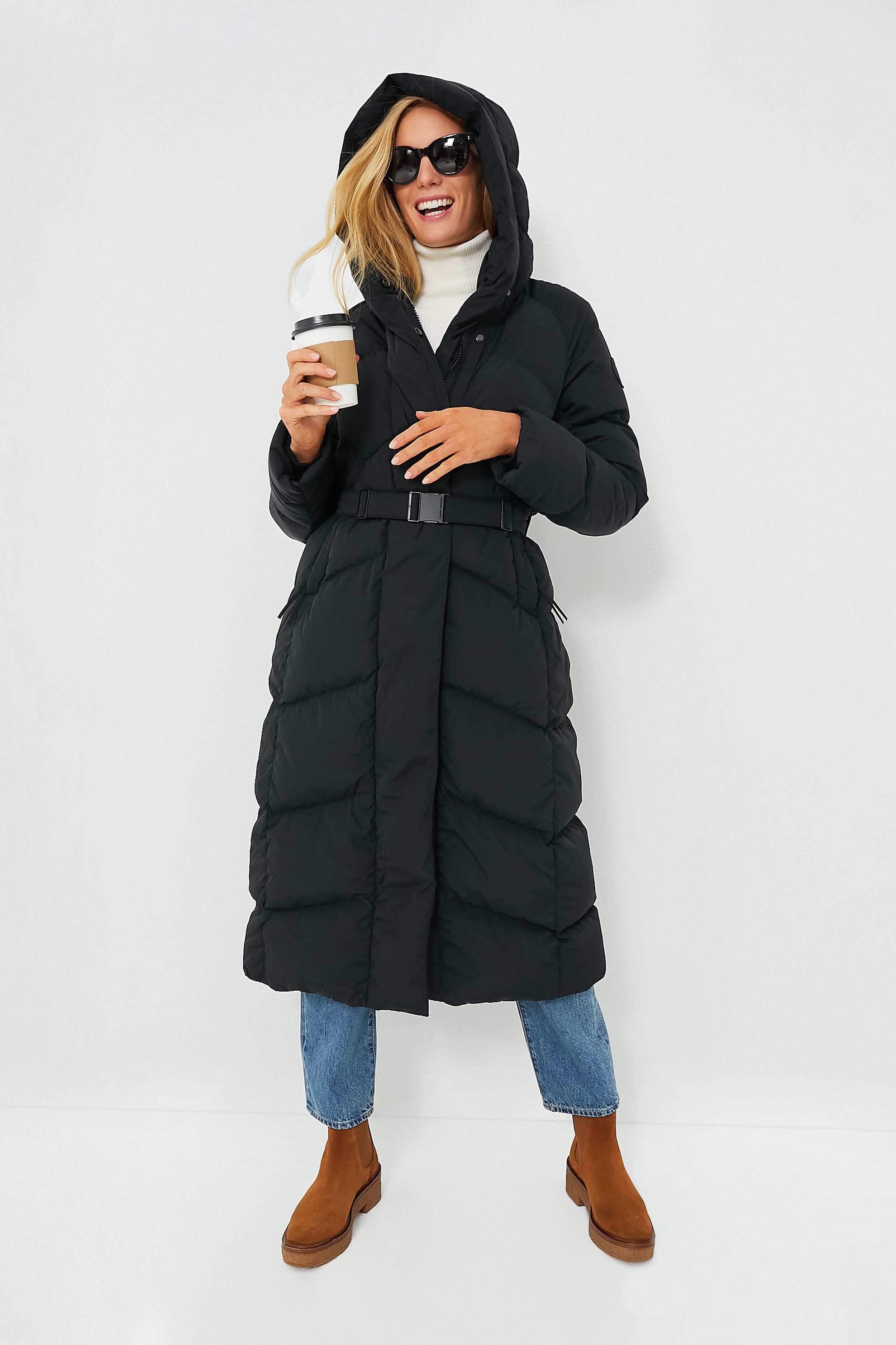 The Black Noir Marlow Parka was made for those who don't let a little cold and wind get them down. With a full-length hem that falls below the knees. an attached wrap hood and a removable belt. you'll look effortless in your new seasonal staple with the confidence of protection against the elements. Crafted to be water repellent and wind-resistant while remaining durable and soft. this coat is one that will stay with you for years to come. Add a beanie and oversized sunglasses for a cool girl look that will allow you to be on the go all day without feeling a chill.