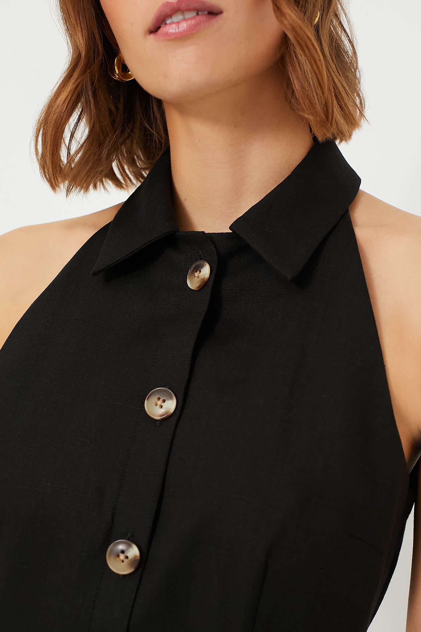 The Black Roxanne Dress is sure to be worn on repeat this season. The borrowed-from-the-nineties silhouette is tailored for a close fit from a French-made linen blend and finished with tortoise buttons. Bonus: it's got pockets. Finish the look with strappy sandals and a tote for a look you can wear all day (and night) long!