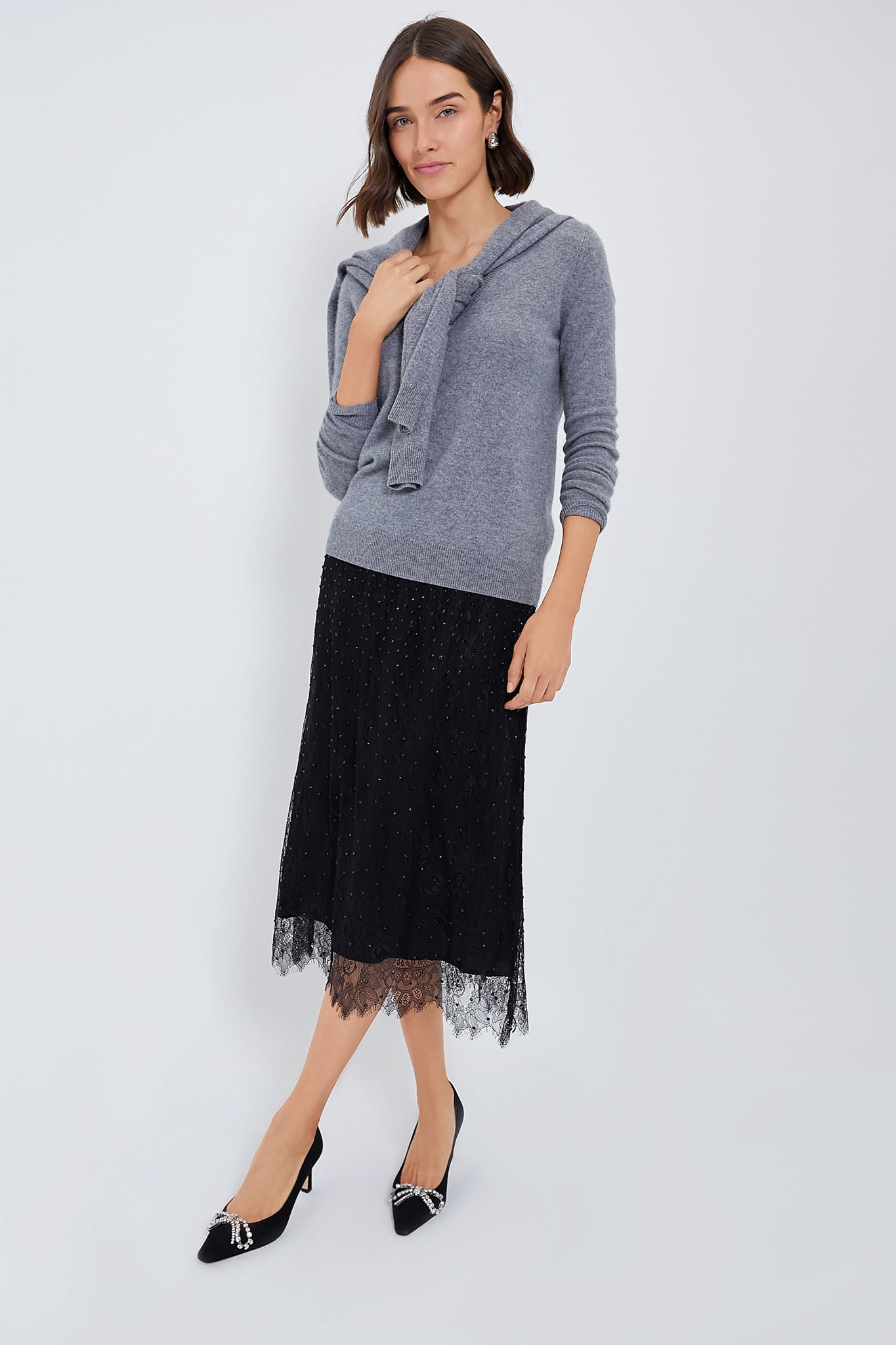 The flirty Seraphina Skirt is chic and playful. with a delicate lace overlay and sequin detailing throughout. Sure to wow at any event. we are styling this with a bodysuit and heels or with a slim sweater and boots!