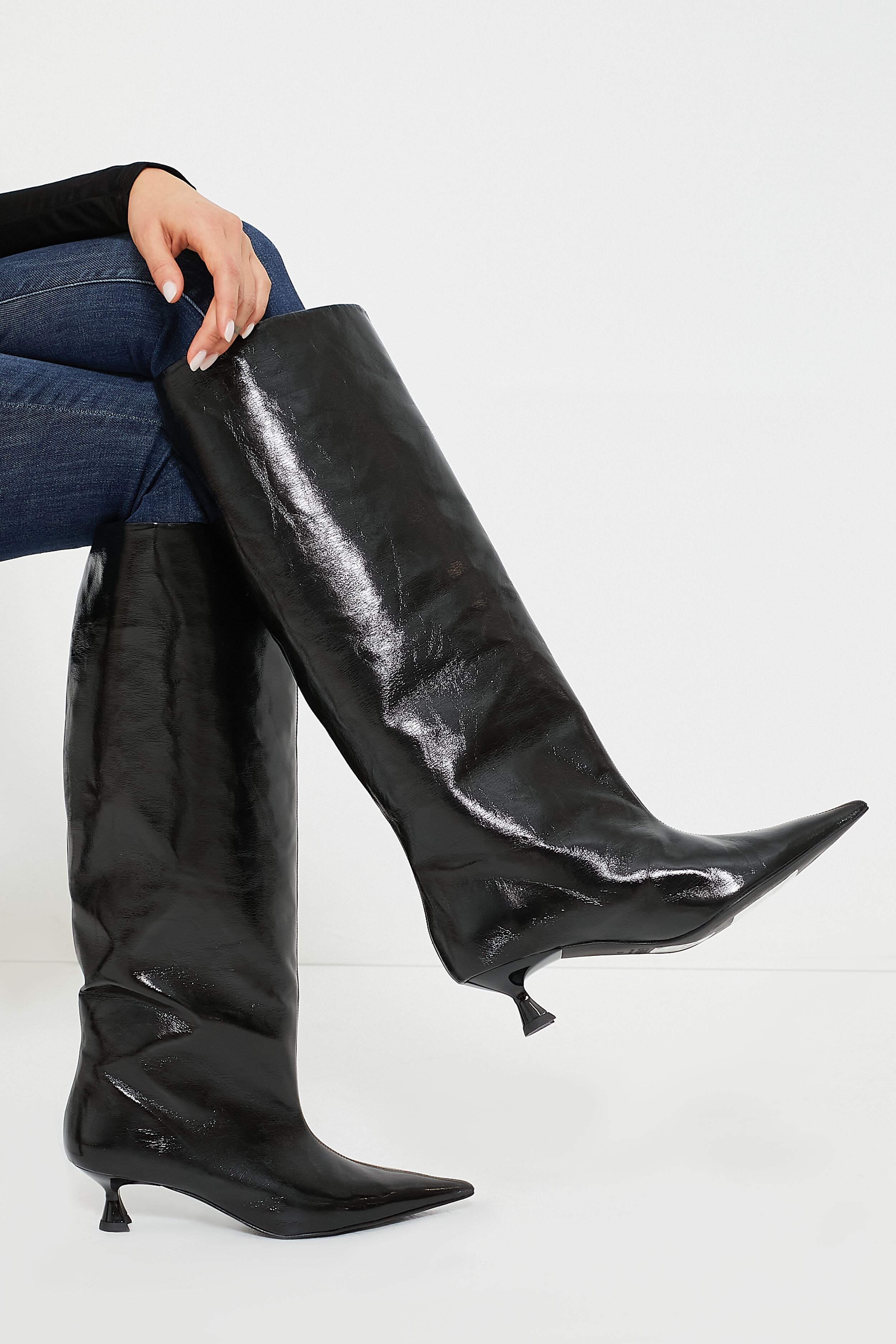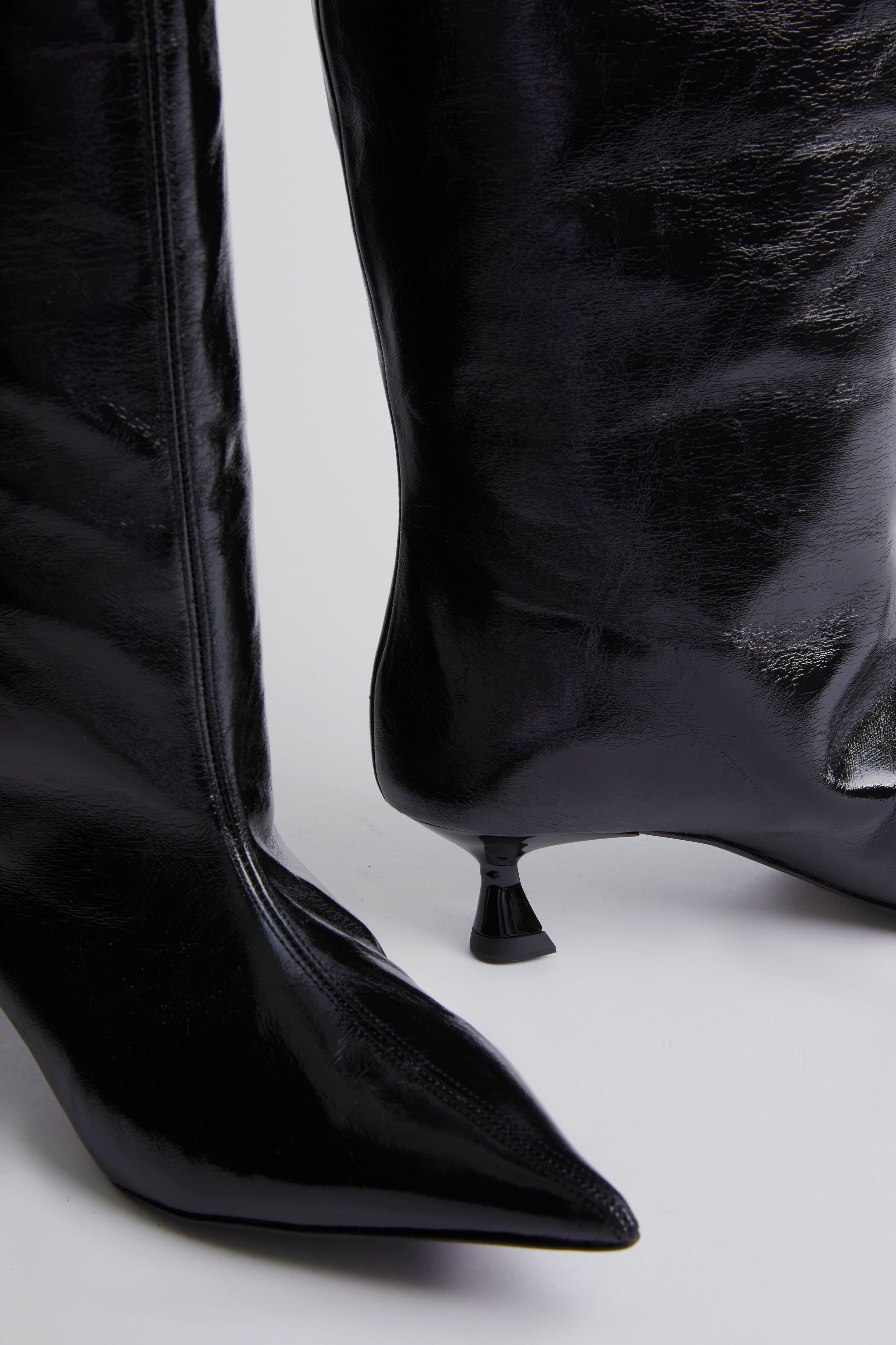 Channel all things cool in the Black High Shaft Boots. We love these soft. slouchy shoes for adding a touch of texture to an everyday ensemble. and bringing a hint of height thanks to that tiny kitten heel. Style them on repeat with a midi dress and handbag for a chic dinner party look. or with a mini skirt and statement earrings for a night out on the town.