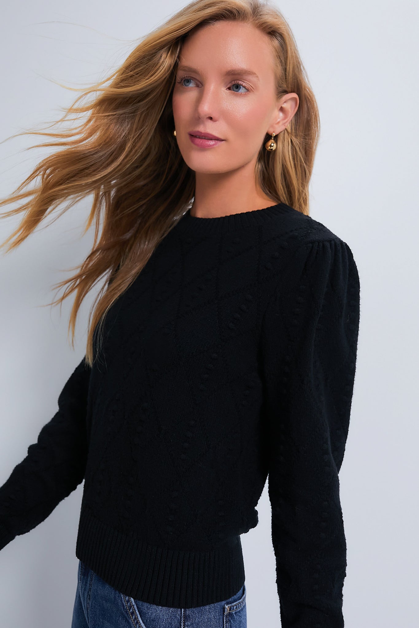 We love a good staple sweater. and the Black Crewneck Violet Sweater is one your closet is craving. Featuring subtle puff sleeves and a playful textured fabric. this style will be one you reach for time and time again. Pair with your go-to jeans and suede booties. perfect for those days when you want to be casual. yet polished.