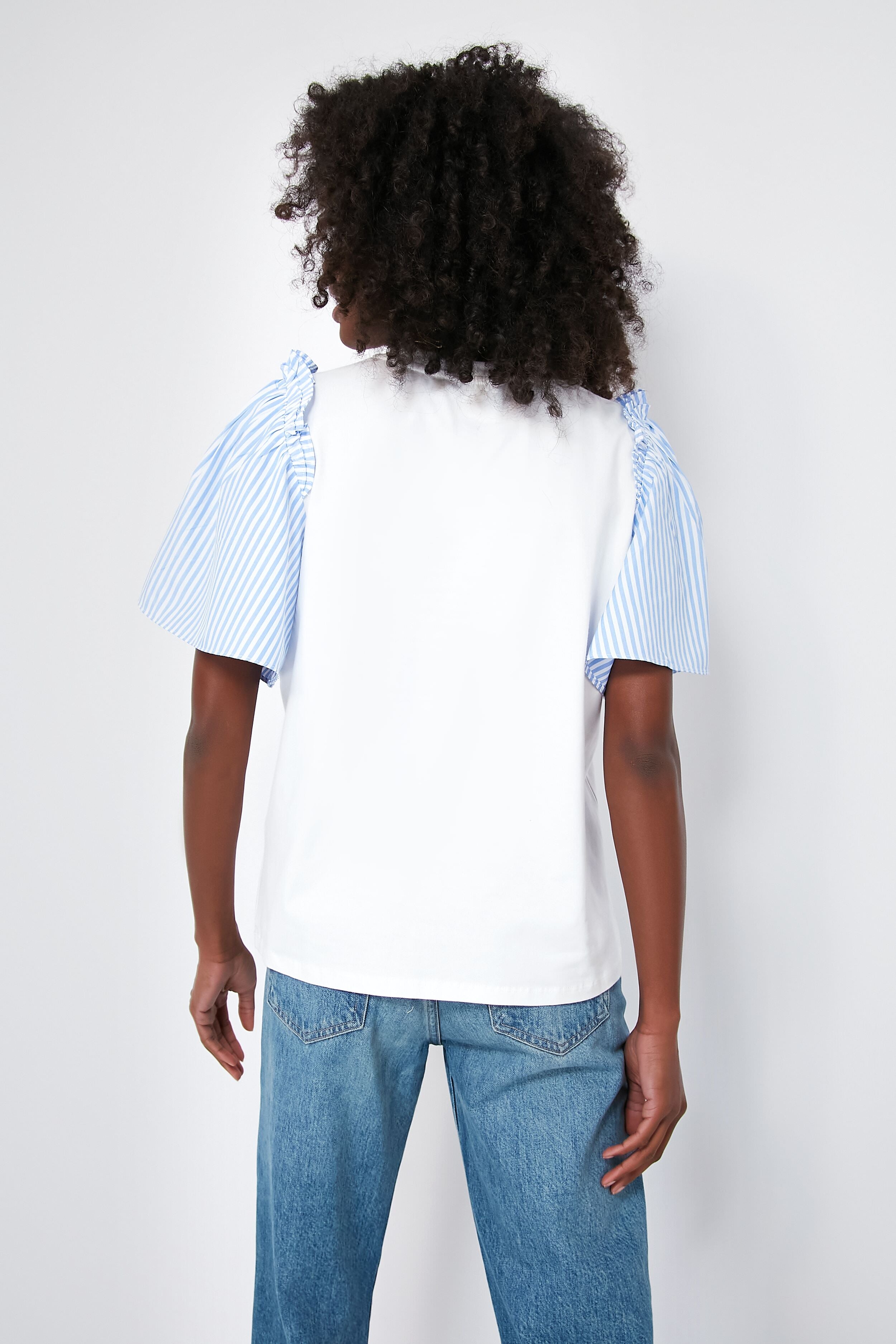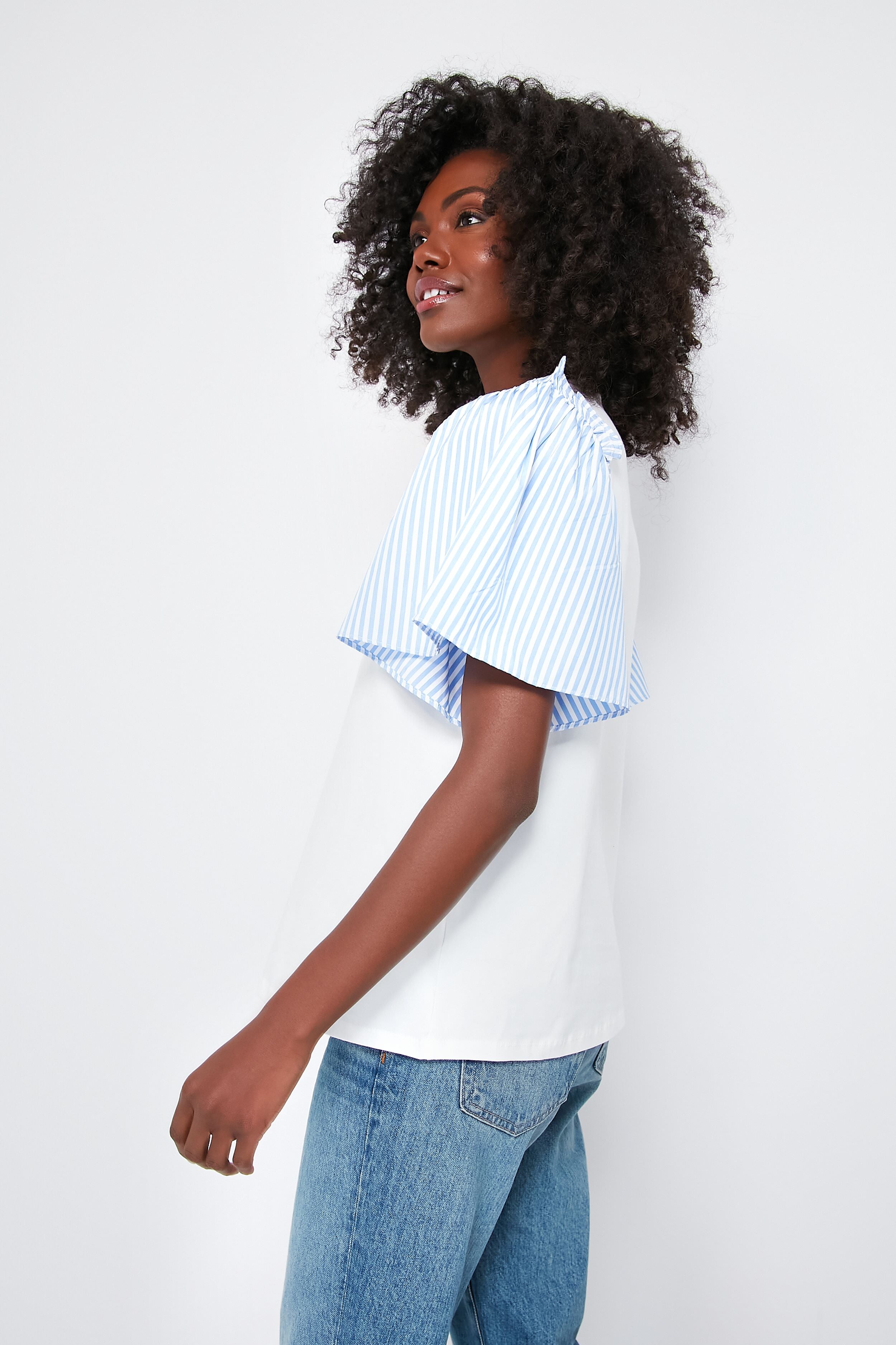 Upgrade your classic white tee with the Mollie Blouse! Featuring flutter sleeves in a crisp blue and white stripe. this top is perfect for days when you don't want to sacrifice style for comfort. Pair with your favorite pair of jeans and neutral accessories for a laidback. cool outfit that will have you ready for wherever the day takes you!