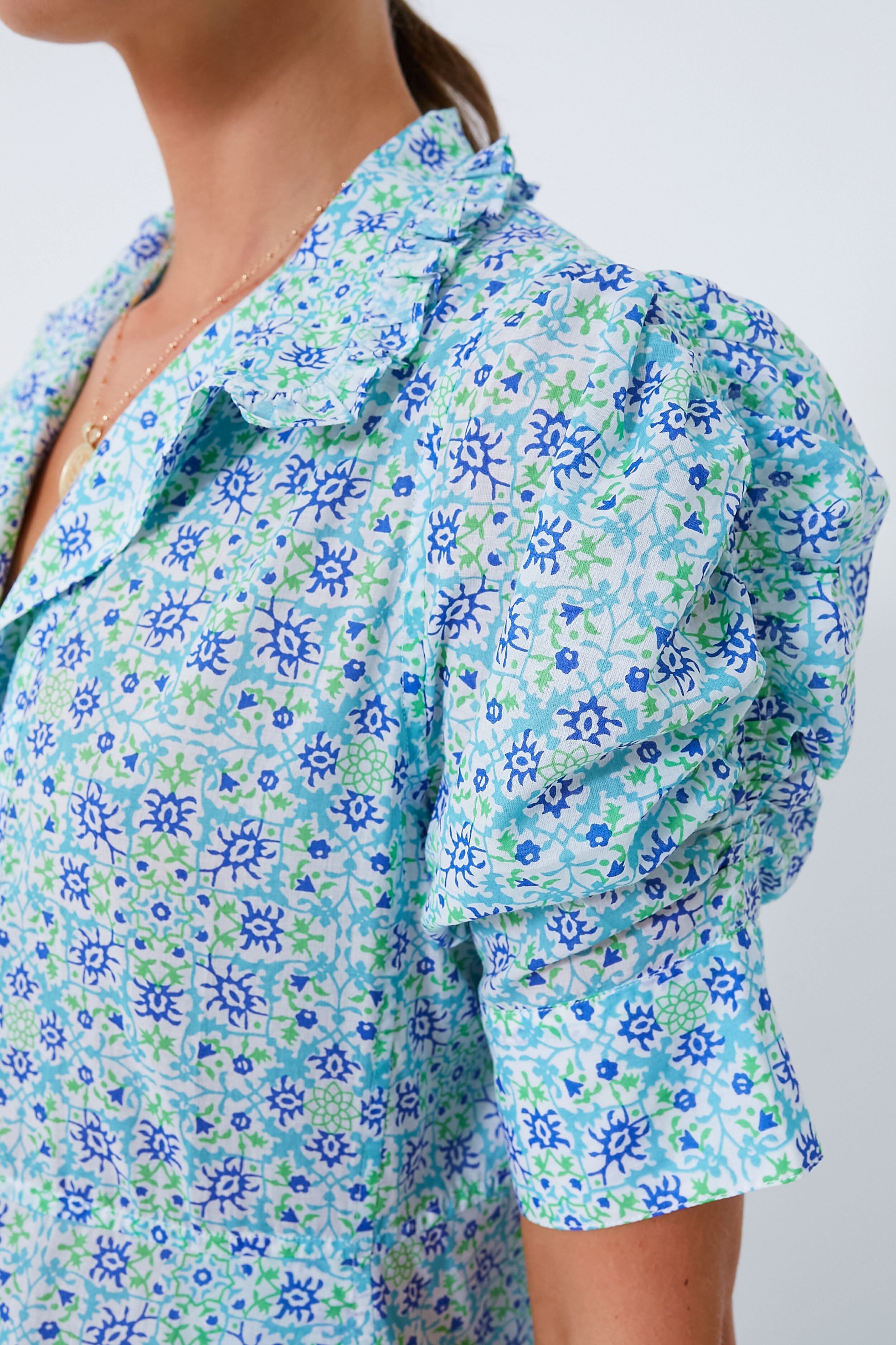 With its frilled collar and feminine gigot sleeves. the Venetia Dress is a nod to the Edwardian era. This maxi features an ornate print in shades of sky and cobalt blue that is fresh and fun and makes us want to get outside in the sun! In a wearable relaxed silhouette that is flattering for all. this darling style is perfect for garden parties when paired with heels. or for brunch with your besties when you add sunglasses and gold hoops.