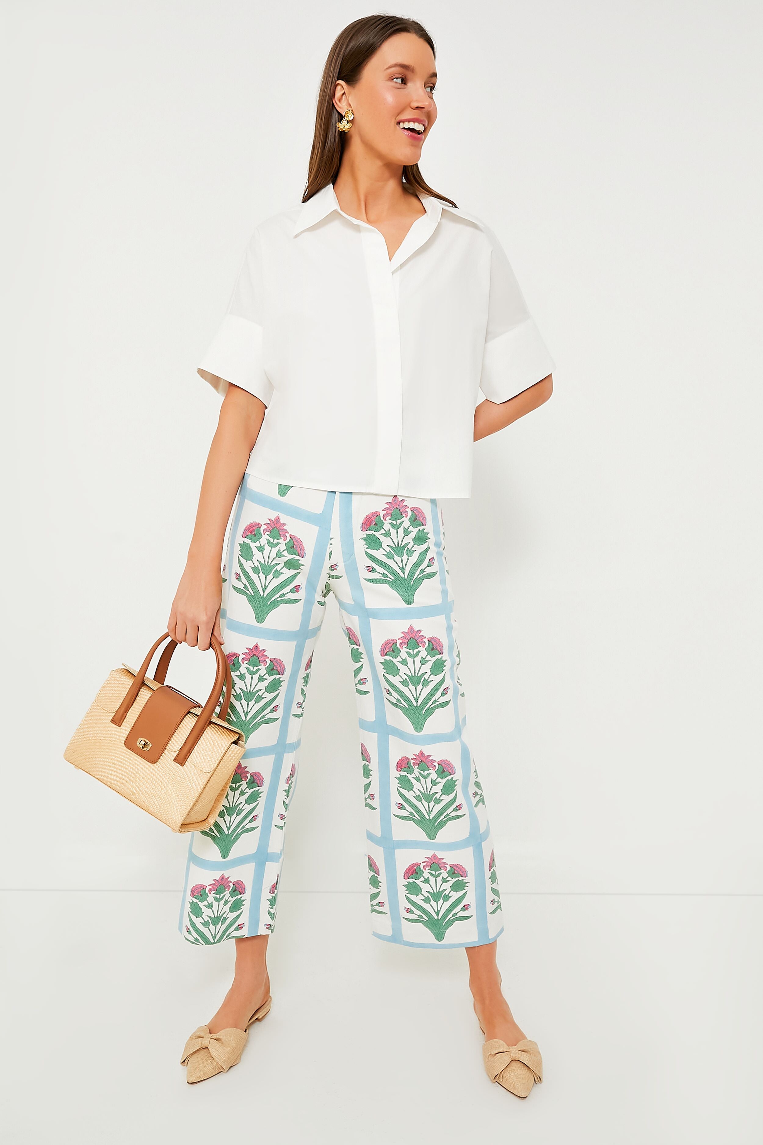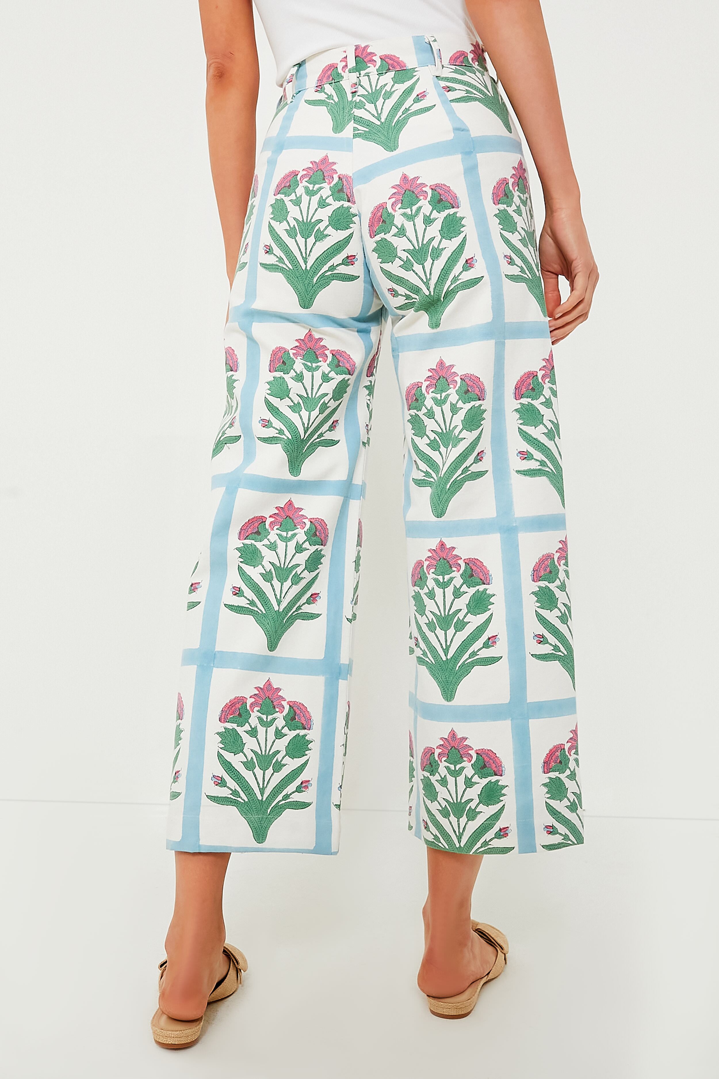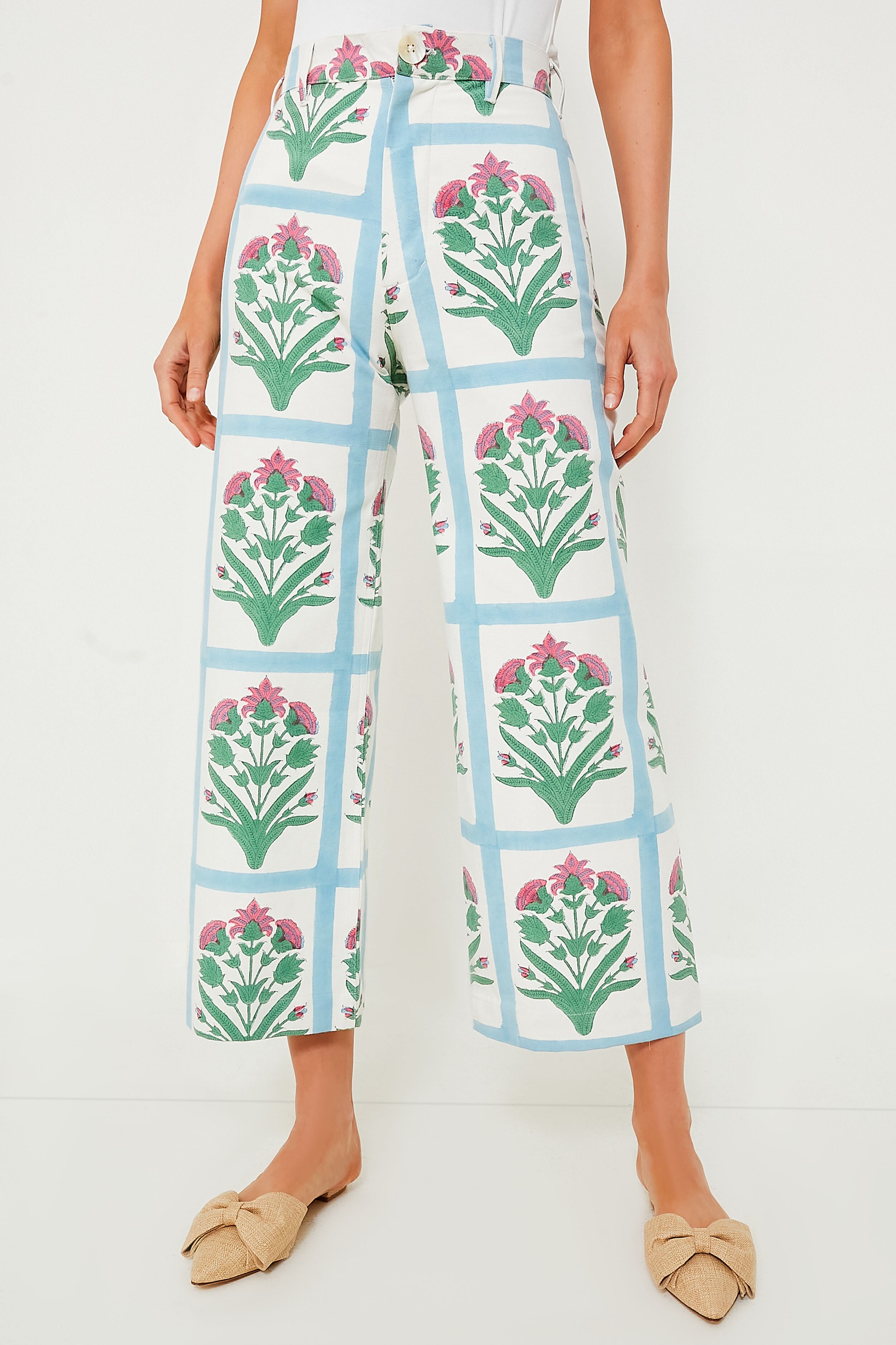Every wardrobe needs a pair of these! The Bluebell Disco Pant features a high rise. wide leg and slightly cropped silhouette. Crafted from lightweight-but-durable canvas. these hand block printed bottoms are designed to hug you through your waist and hips. Immensely flattering and elongating. dress them down with a basic tee and sandals for a coffee date. or dress them up for dinner and drinks with a silky blouse and wedges!