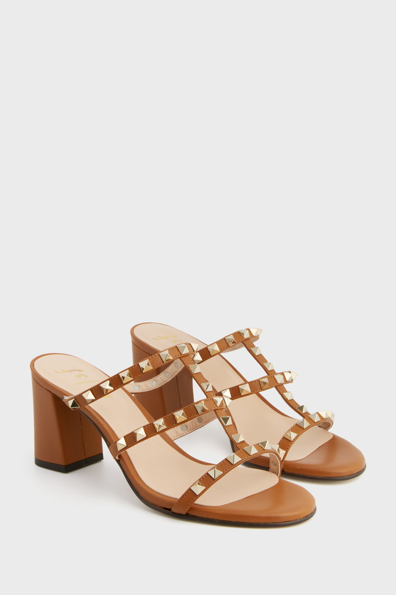 Featuring gold studded detailing that adds a bit of edge to a classic silhouette. the Foster Stud Sandals are about to become your go-to shoe. These stunners are best-sellers for a reason — their block heel is comfortable enough to wear from day to night. desk to drinks. and everywhere in between. Effortlessly chic in a neutral cognac colorway. these pair well with cocktail dresses. trousers. mini skirts. denim. you name it!