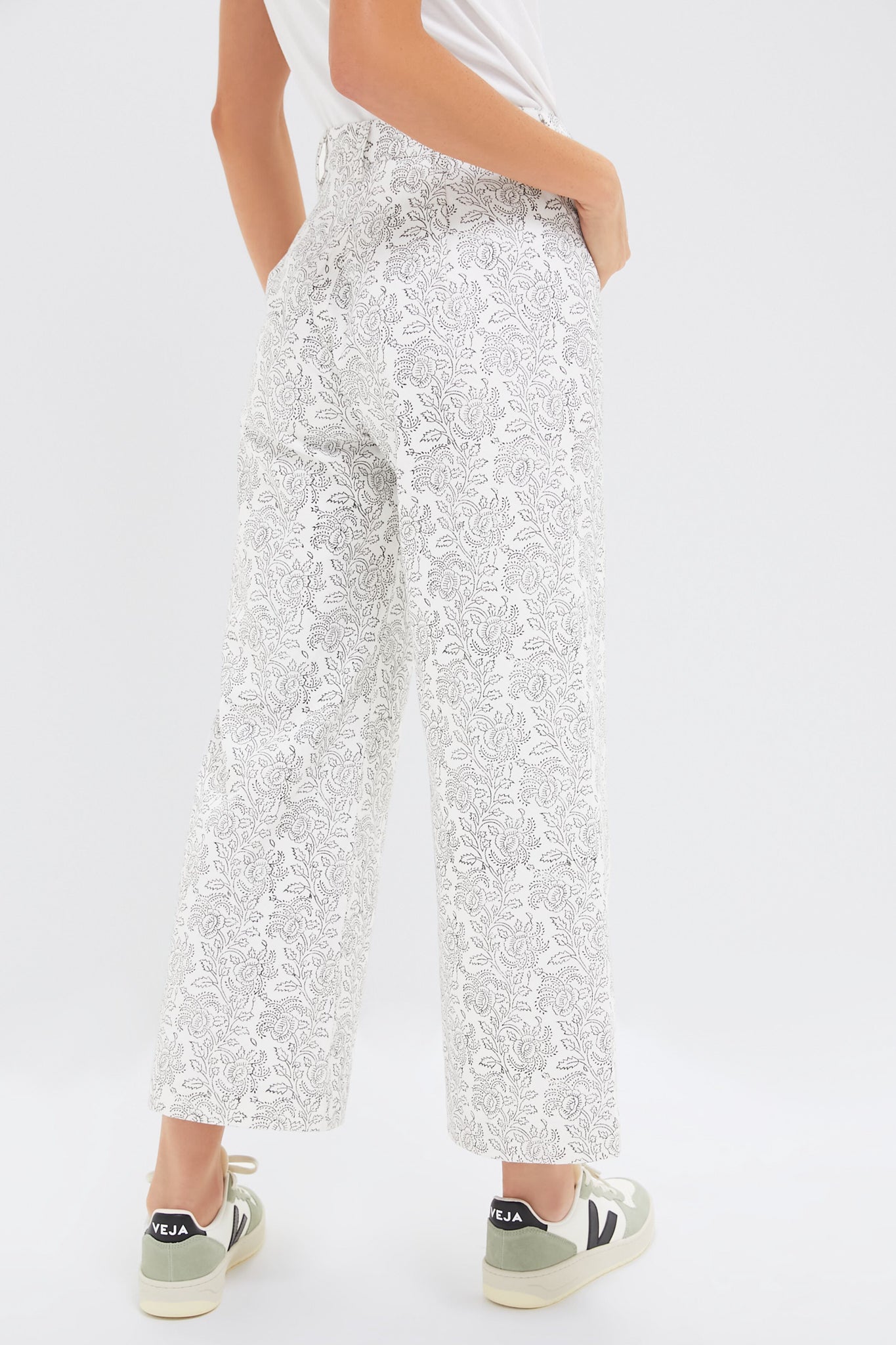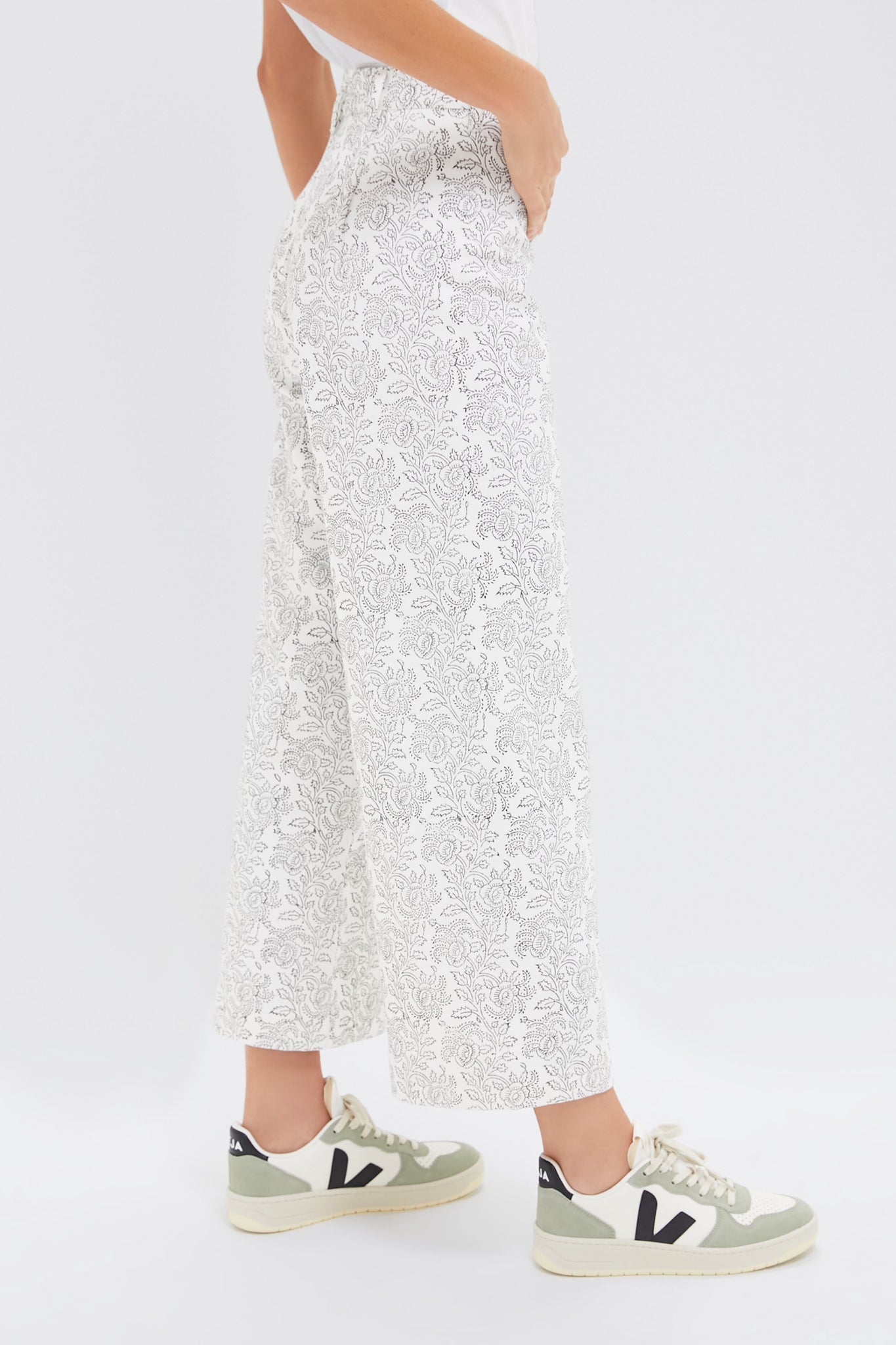 The Deep Slate Green Disco Pants features a high rise. wide leg and slightly cropped silhouette. Crafted from lightweight-but-durable denim. these hand block printed bottoms are designed to hug you through your waist and hips. Immensely flattering and elongating. dress them down with a basic tee and sandals for a coffee date. or dress them up for dinner and drinks with a silky blouse and wedges!.
