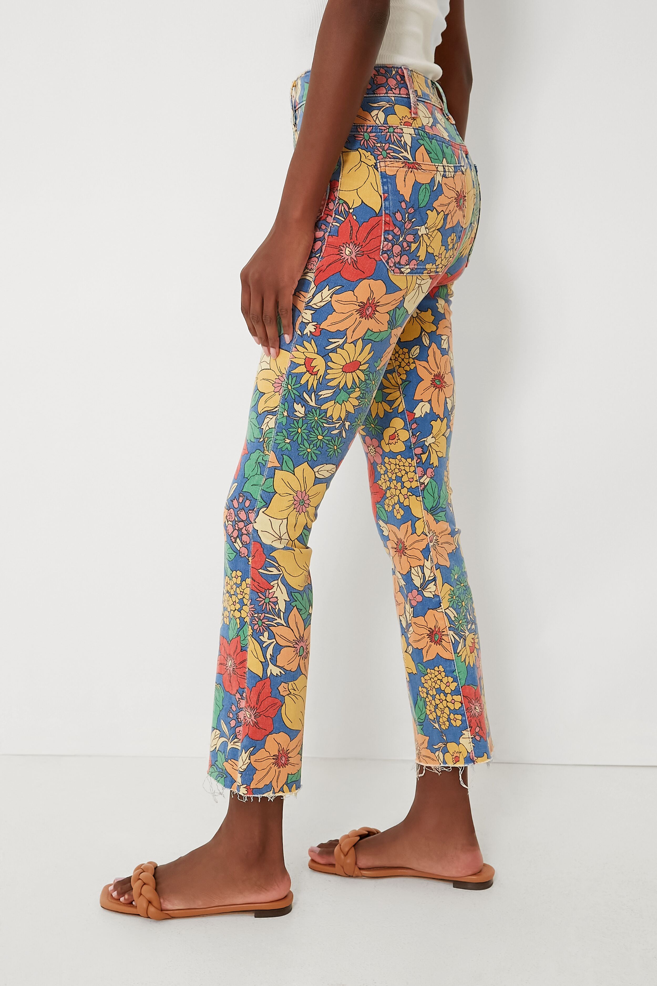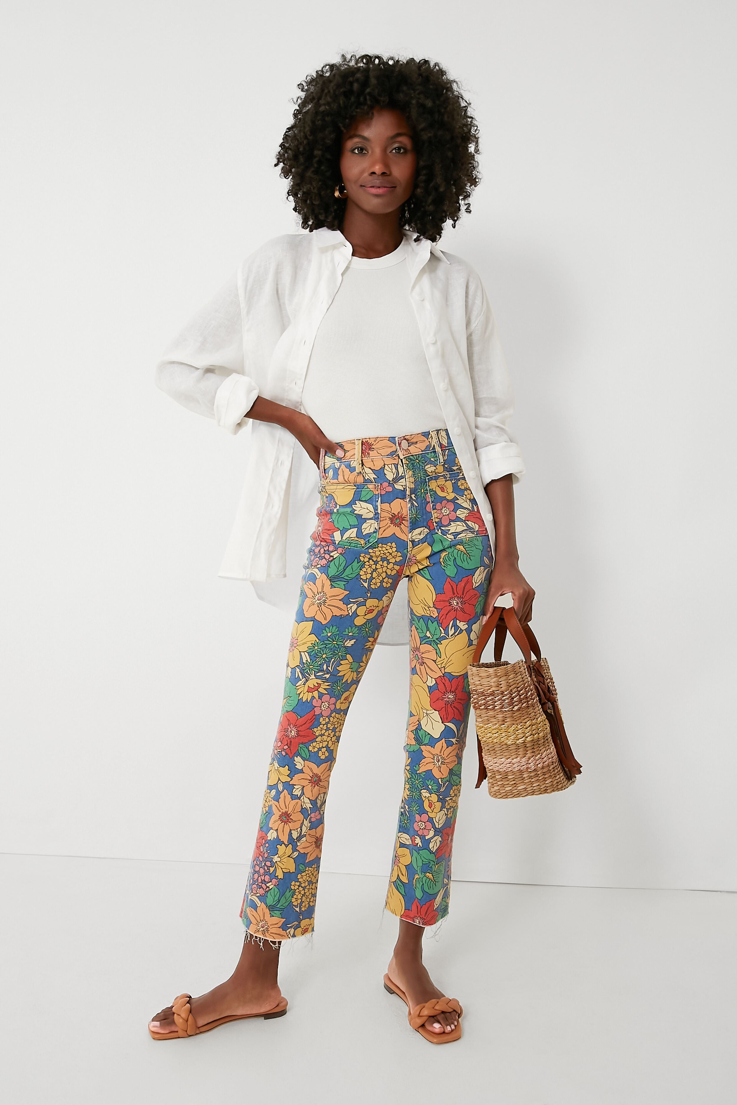 The Fresh Blooms The Hustler Patch Pocket Ankle are printed with pollinator paradise in the form of fabulous flowers. Add a little sunshine to your look with these kick flare silhouette bottoms that have a comfortable high rise. retro-inspired patch pockets at the hips. and just the right amount of stretch. Style with an easy tee and sandals for a sweet. summery styling perfect for running errands around town or grabbing a spritz with your girls.