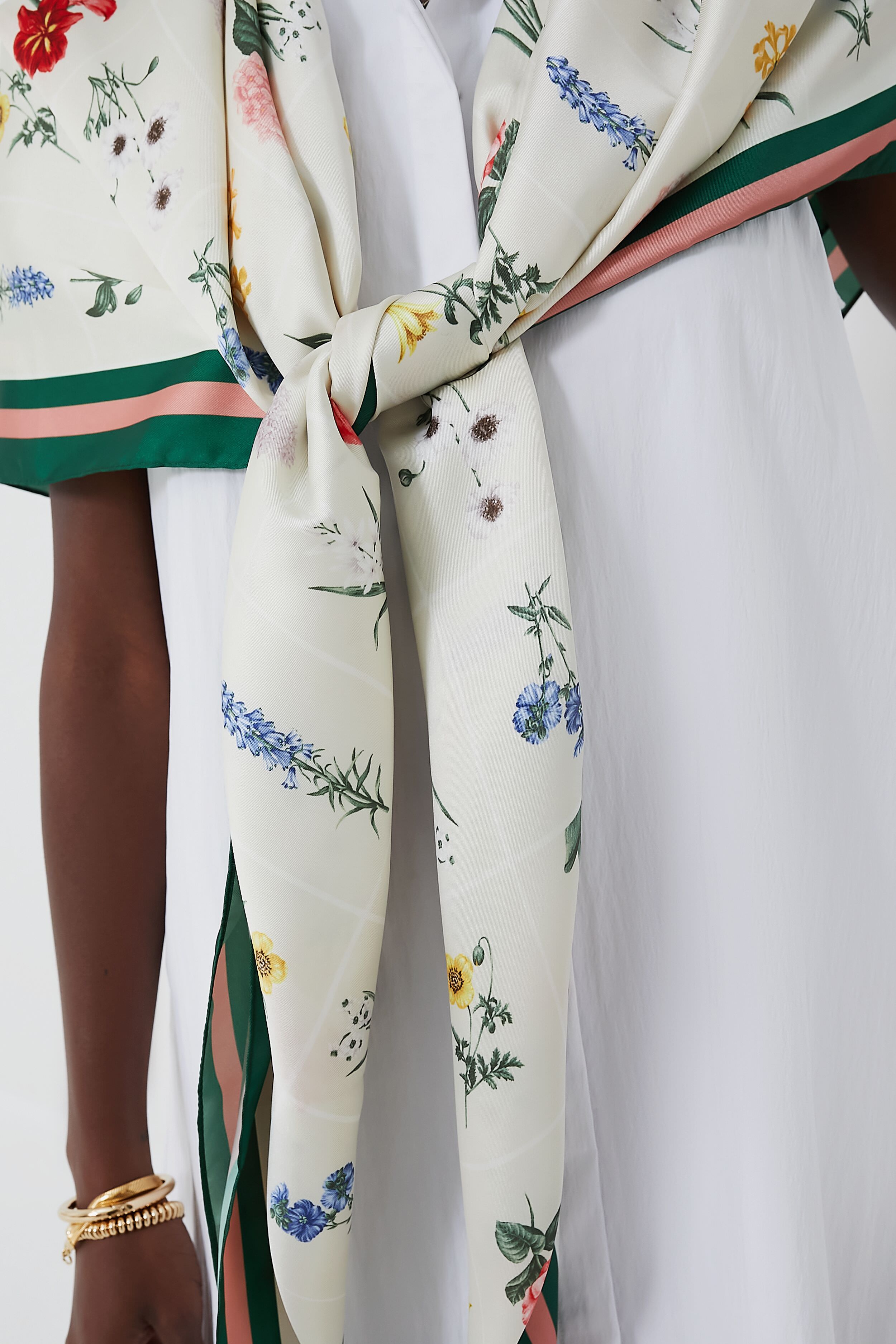Classic style meets colorful accent with the Fresh Buds Scarf. Throw this floral stunner over your shoulders for a pop of fun or wrap it around your neck for a little extra warmth. the possibilities are endless with this luxe staple accessory.
