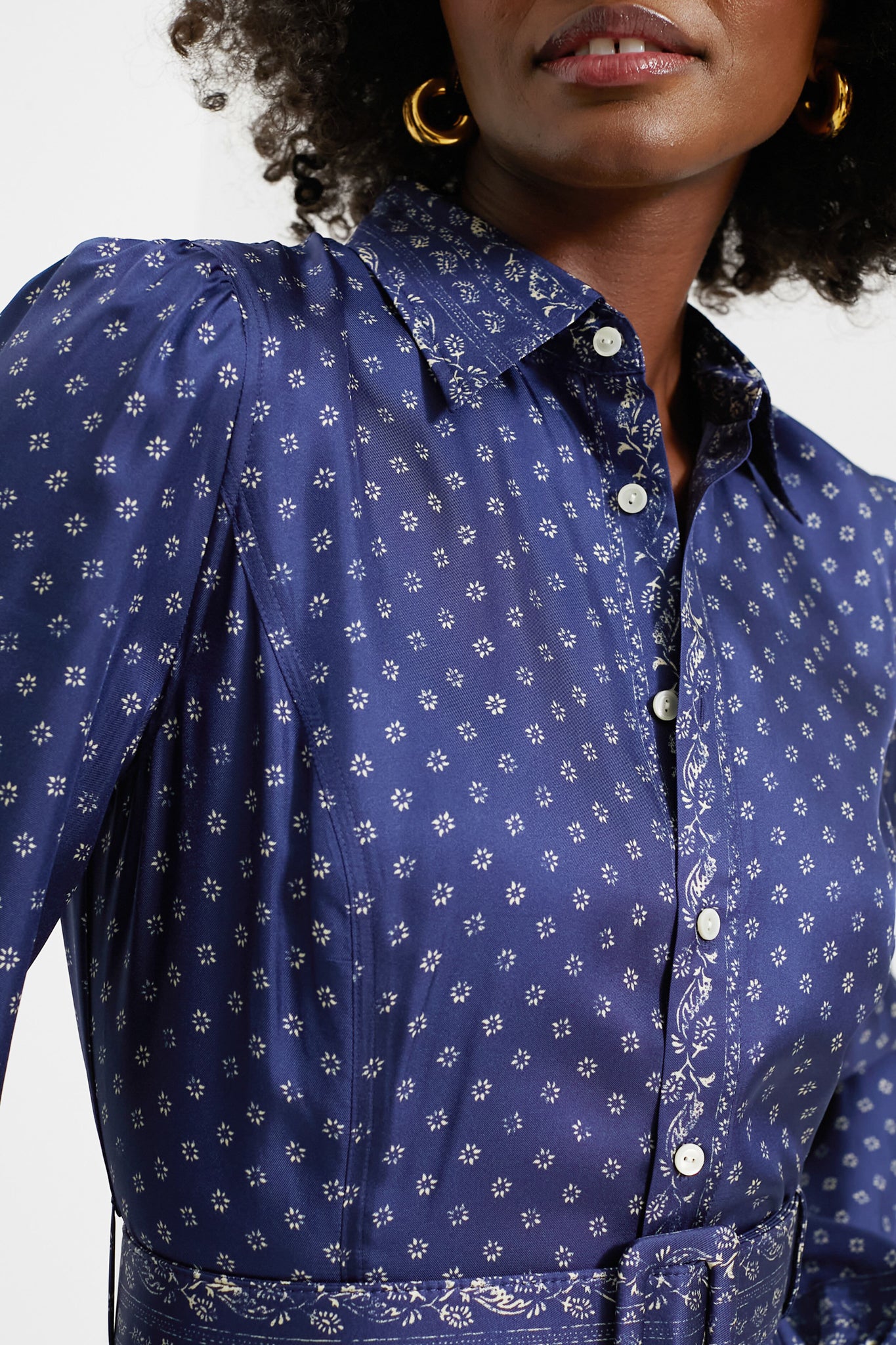 The Geo Paisley Mer Day Dress is a effortlessly elegant style to carry you through year-round occasions. Beautifully crafted from a flowy fabric. this classic shirt midi features a flattering A-line silhouette. blouson sleeves and a matching belt to cinch your waist. Simply pair with heels or boots and you are ready to wow the crowd!