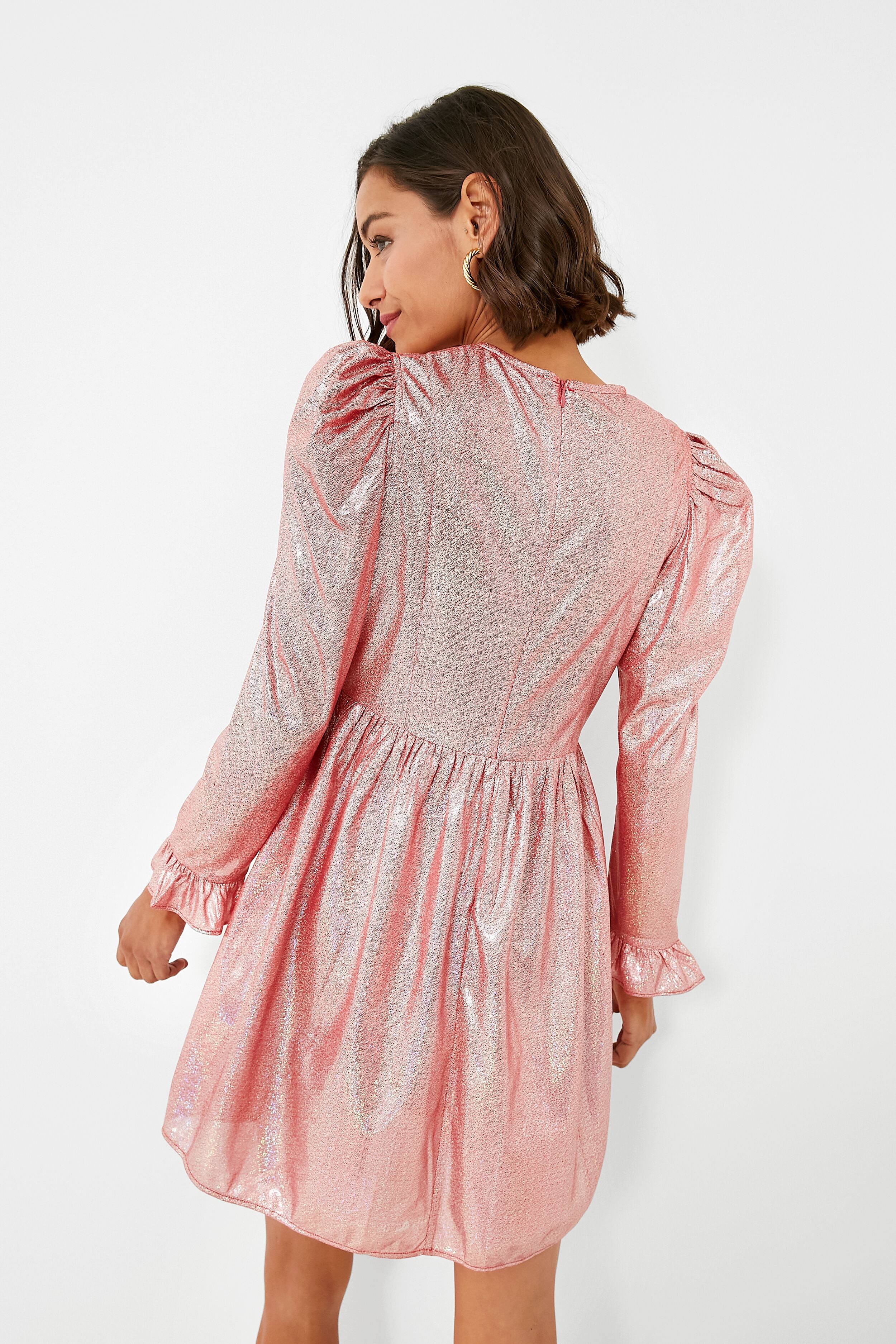 Holographic Ballerina Pink Square Neck Mini Prairie Dress