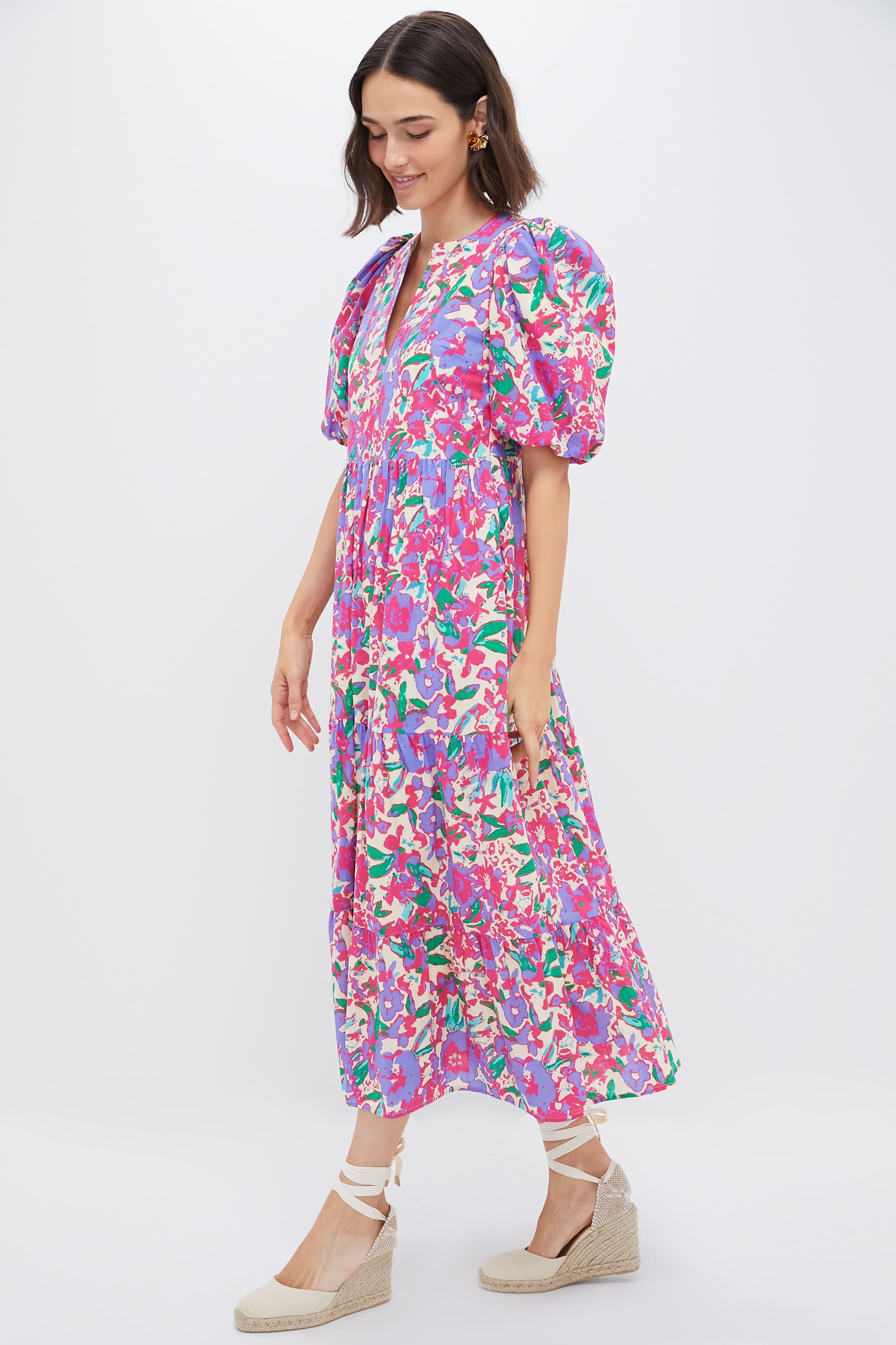 The Magenta Multi Floral Cisco Dress promises to make you stand out in both comfort and style. Featuring a flowy silhouette. and perfectly puffed sleeves. this dress is versatile enough for any occasion. Dress it up with raffia heels and clutch for an al-fresco soiree. or dress it down with flat sandals and simple gold jewelry for a lunch date.