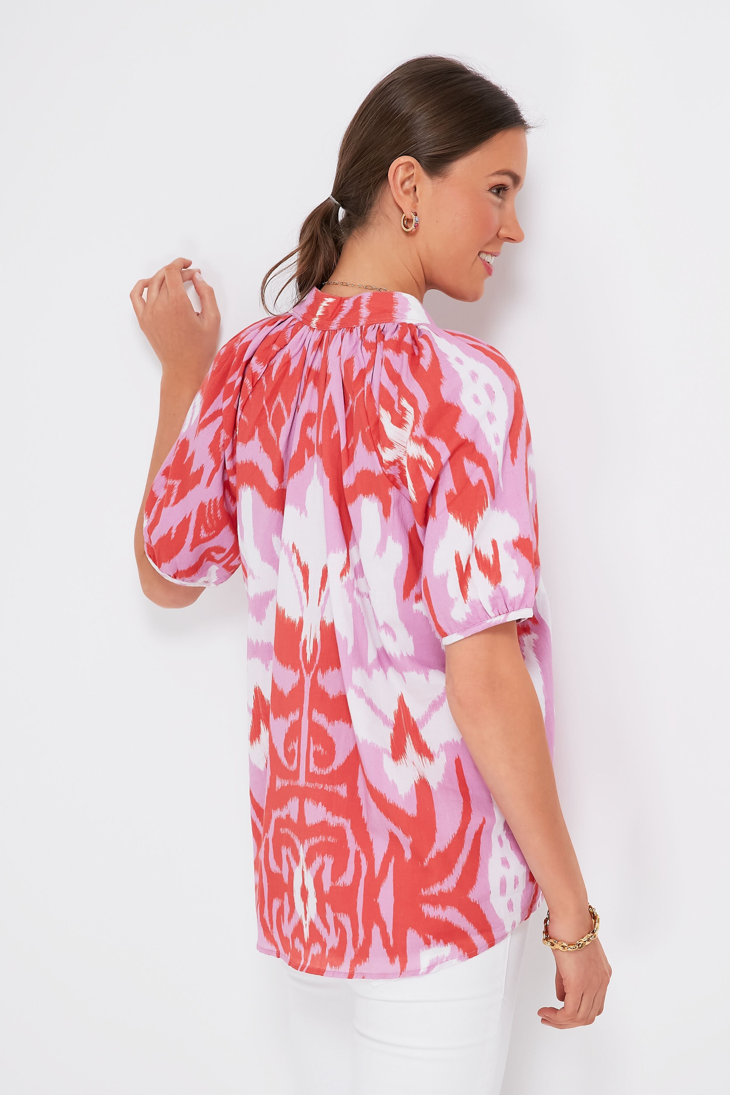 Crafted from an airy cotton voile in a breathtaking ikat print. expect ease and joyfulness from the Multi Pink and Red Tulip Dana Blouse. Its billowy fit is universally flattering with boho sensibility. and works for everything your day may hold — seriously. it looks just as great grabbing a morning coffee as it does at happy hour. Pair this bright and bold top with white denim and raffia accessories for a summery look that will have you feeling your best.
