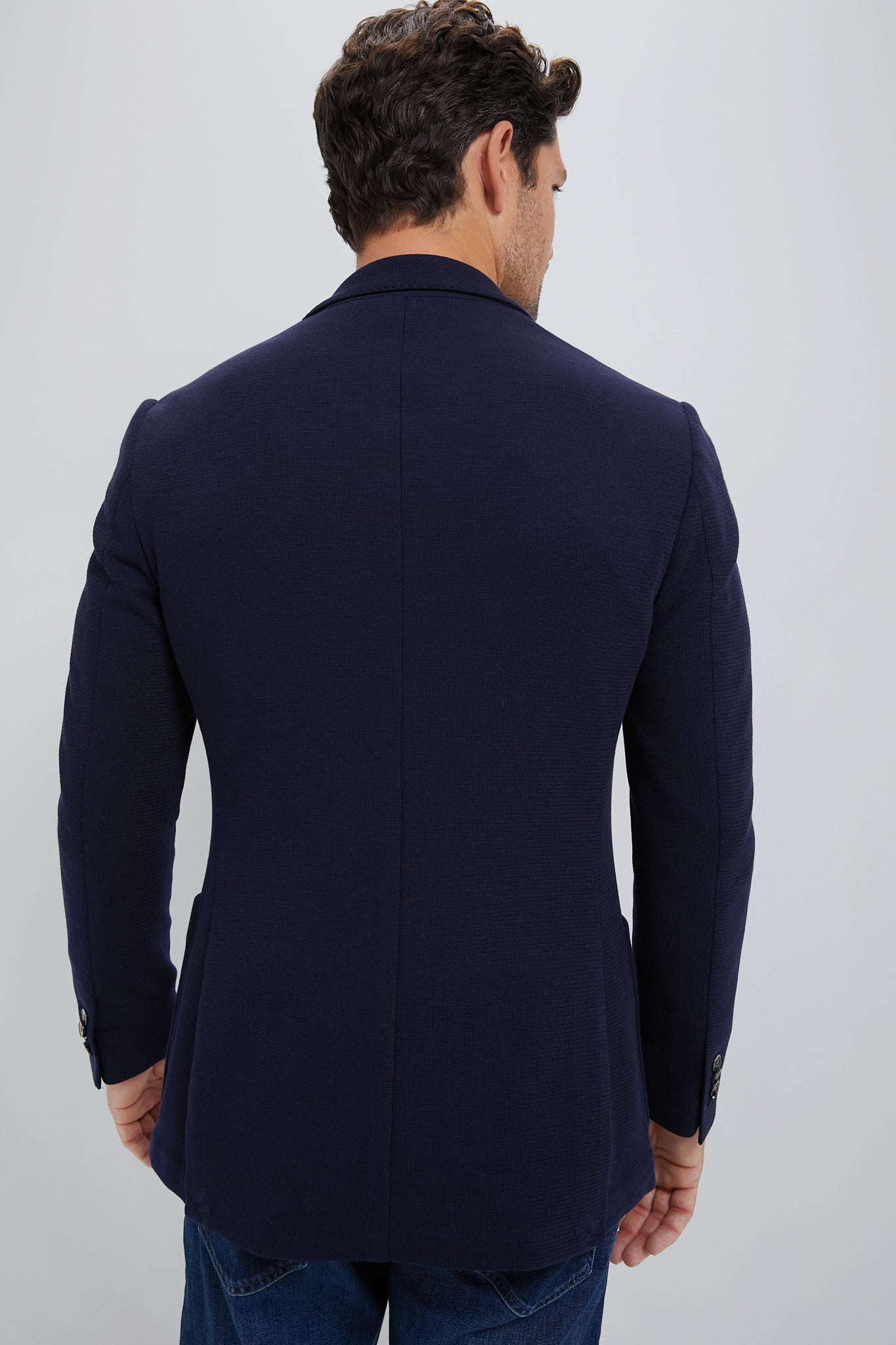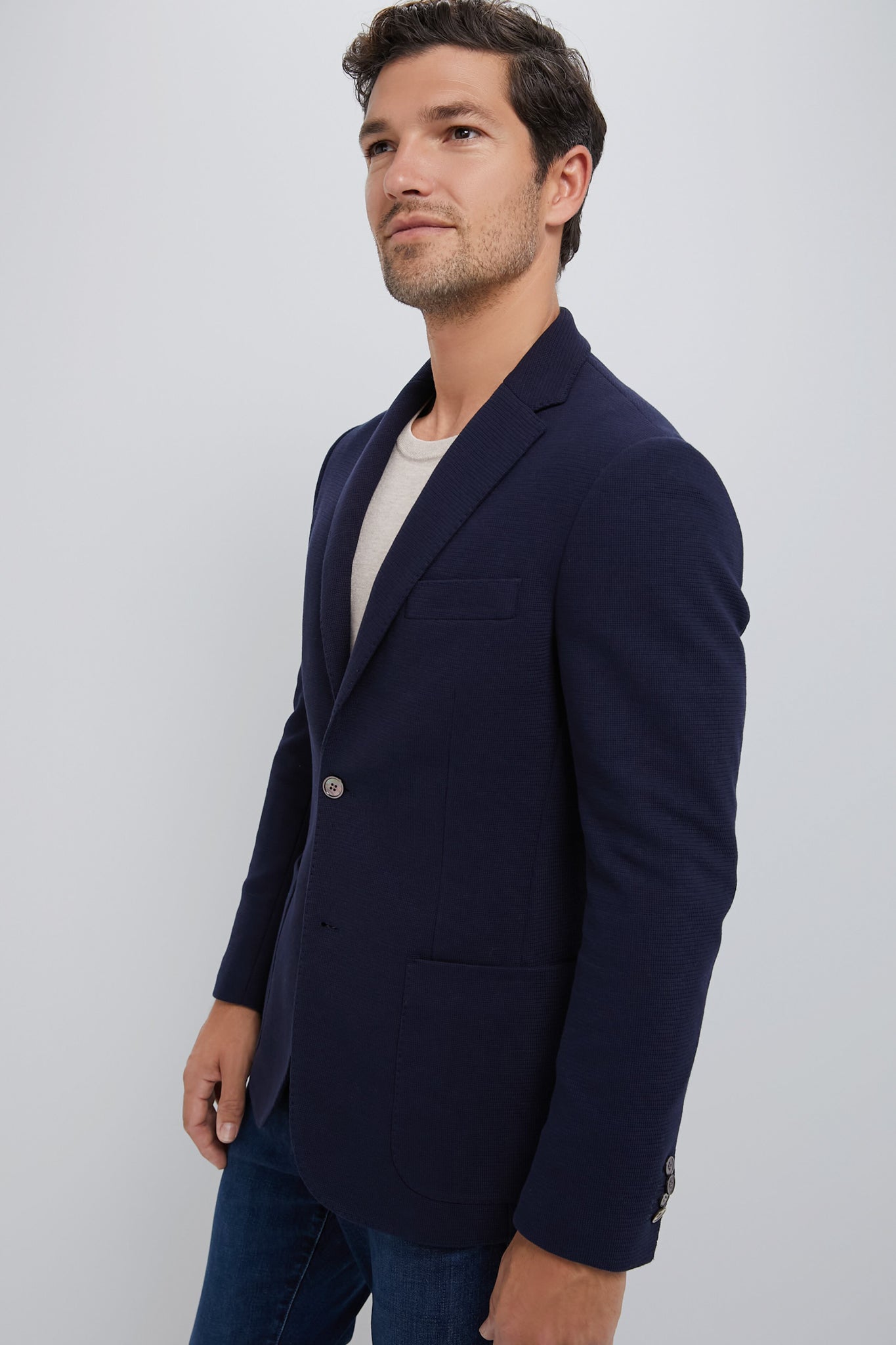 This blazer was made to travel—literally. Wrinkle resistant and ready to toss in your briefcase or to throw on before a quick flight. this knit jacket is made of sweater-soft cotton and designed to hold its shape. You can think of it as the cool-guy blazer for business trips and days at the office. Style with a pair of chinos and your favorite loafer for a smart yet casual look.