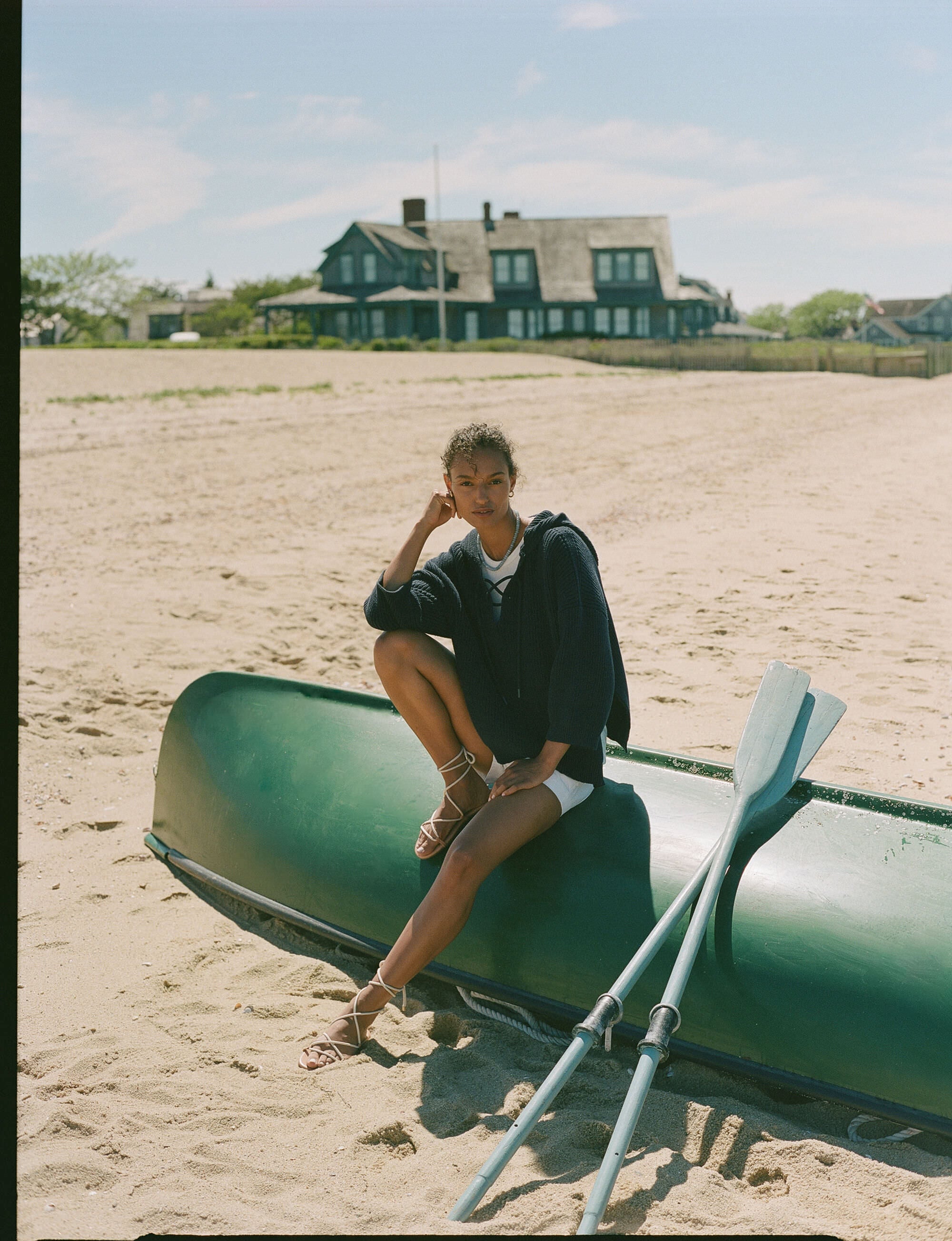 An ideal style for running errands. grabbing lunch with friends. or shopping around town. the Navy Knit Declan Pullover is effortless and oh-so-classic. This slightly boxy top boasts quarter-length sleeves. a front lace-up tie closure. and a curved hem. this stunner checks all the boxes. Pair with denim shorts and sneakers or layer it over a striped-tee and your favorite tee for a playful yet chic everyday look.