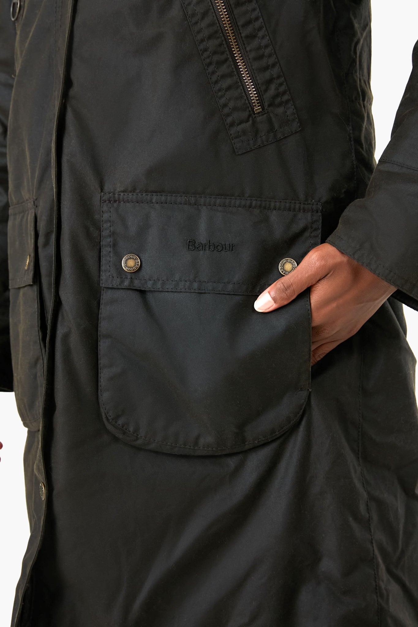 - Zippered welt pockets at ribs
