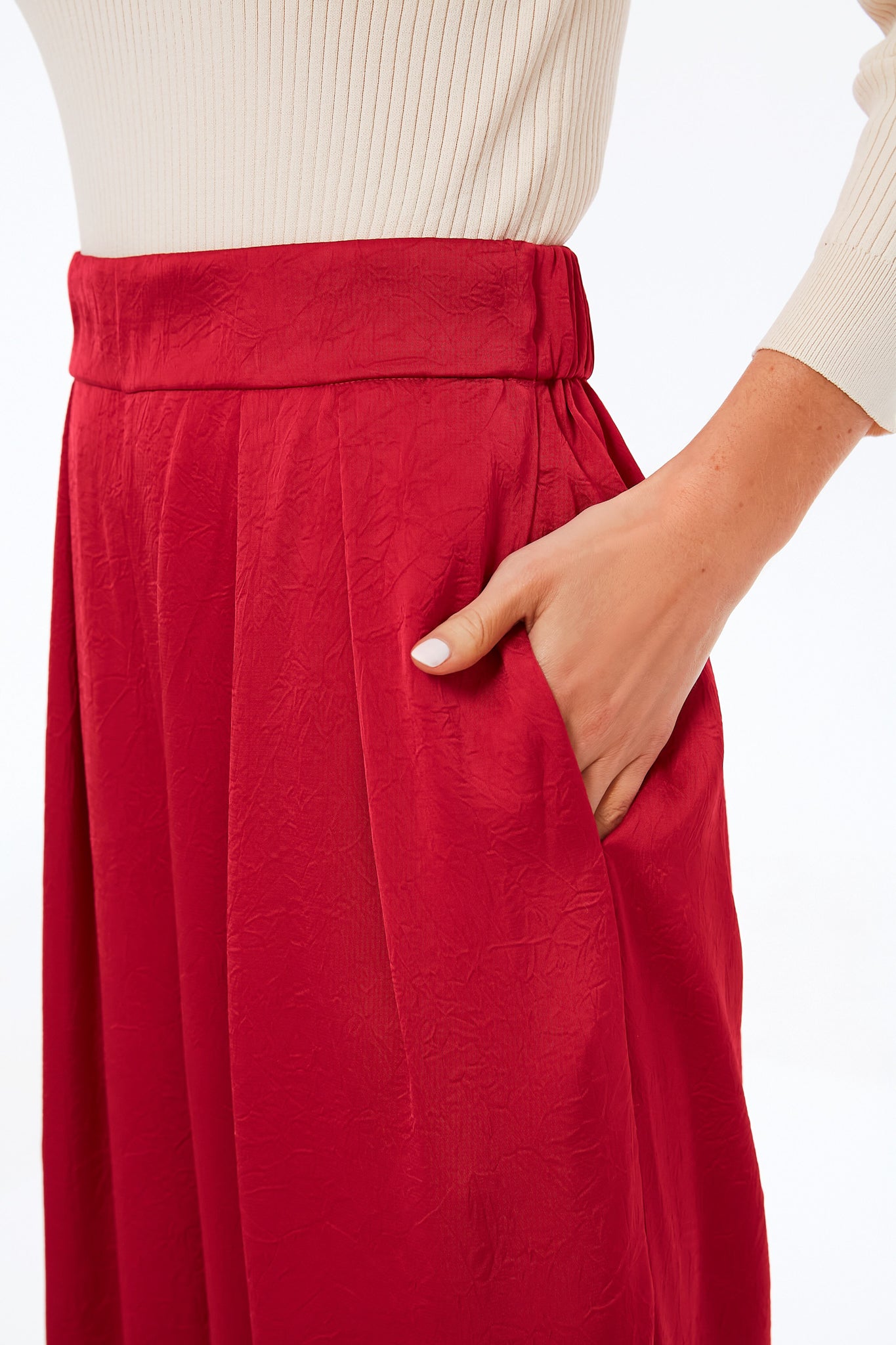 Bold. trendy colors to brighten up your day. queue the Persian Red Noella Pants. These high-rise. wide-leg trousers feature a pleat at the waist and an elasticated waistband for a sophisticated. eye-catching look. Wearing these will instantly boost your mood. just add gold heels and accessories and you are ready for a fun-filled night with the gals.