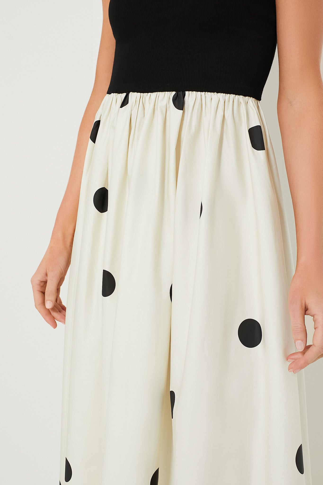 The Polka Dot Frankie Dress is as elegant and versatile as it gets. This chic maxi features a strapless ribbed bodice that flows into a full A-line skirt. The neutral black and white makes it perfect for pairing with both colorful and neutral heels!