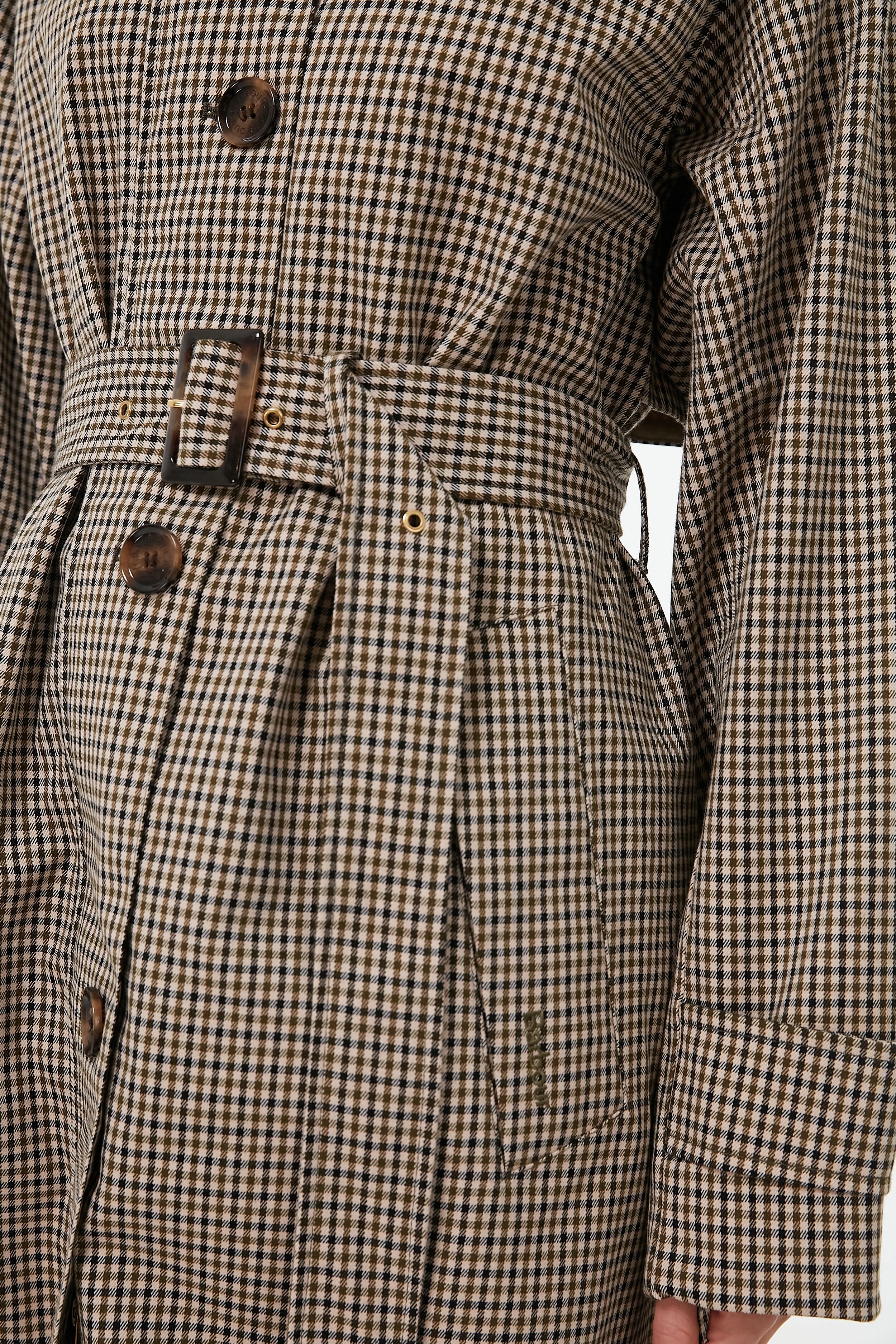 Who doesn't need a chic trench in their life? The Somerland Jacket is the ultimate outfit staple that will have you looking your best without even trying. With a slightly oversized fit that allows for a chunky knit underneath. as well as a point collar. single-breasted button closure. and a micro-check pattern. this sophisticated piece of outerwear is a need. Timeless enough for year after year wear. throw this on with anything from denim to day dresses for a look that's perfect for transitional seasons.