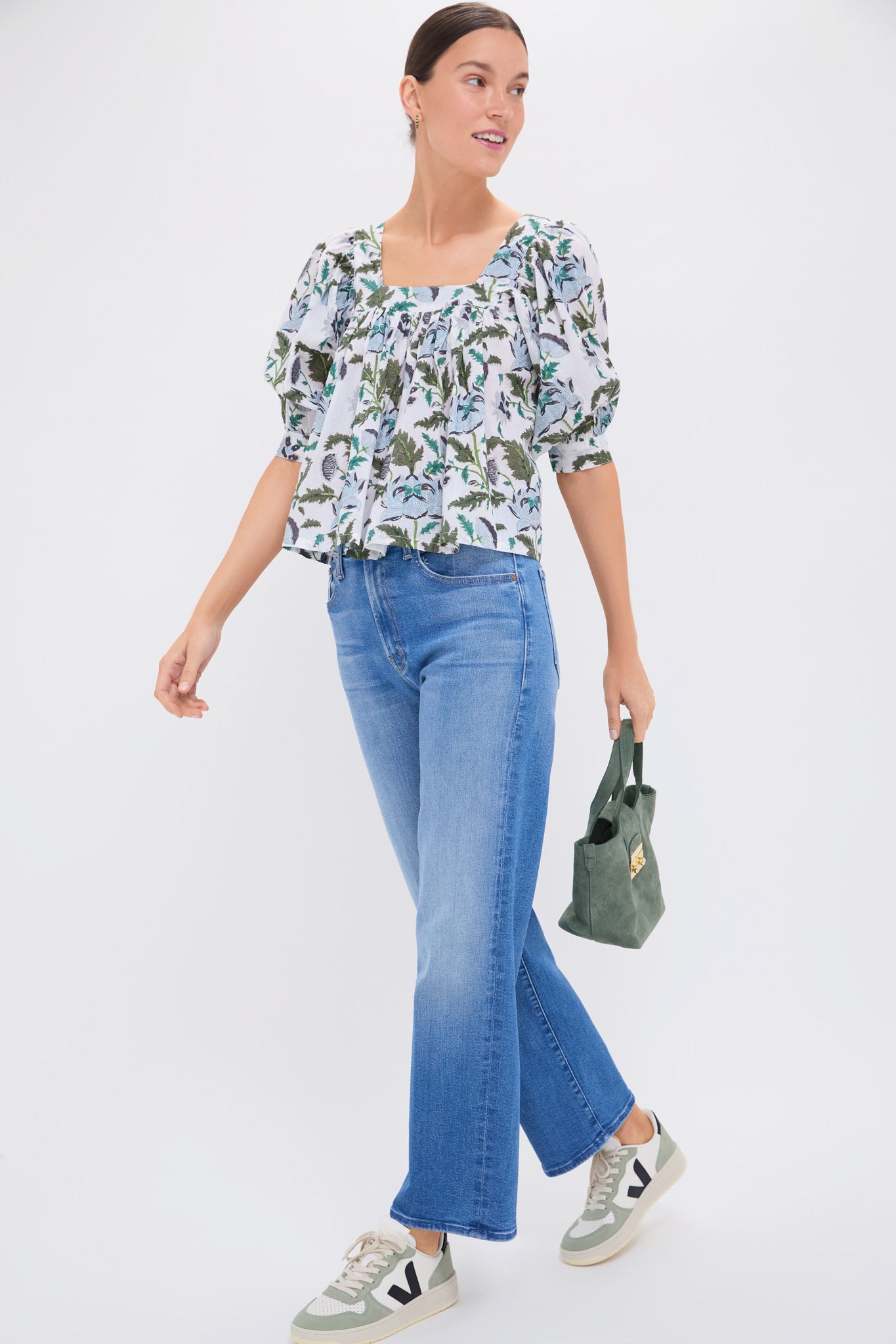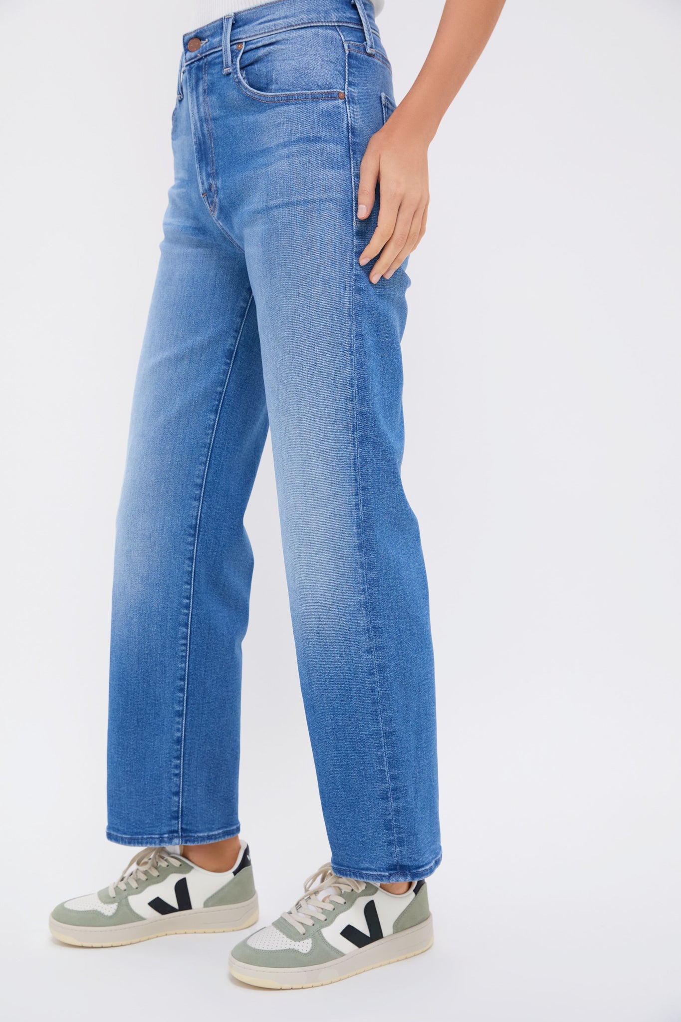 The Read Between the Lines The Rambler Zip Flood features a high waist. straight leg. and clean hem. Crafted from soft stretch denim. this medium blue wash with subtle fading this classic fit is perfect to wear with sweaters. casual tees and flats or sneakers!