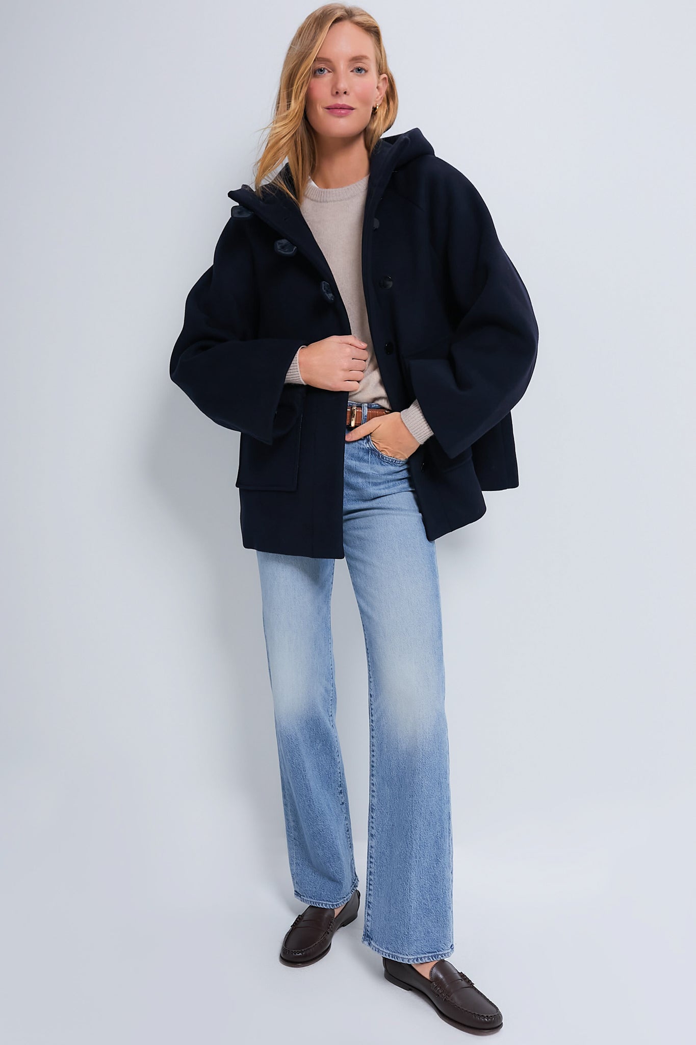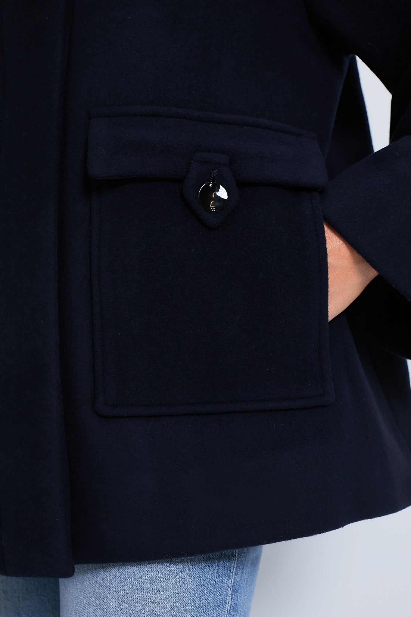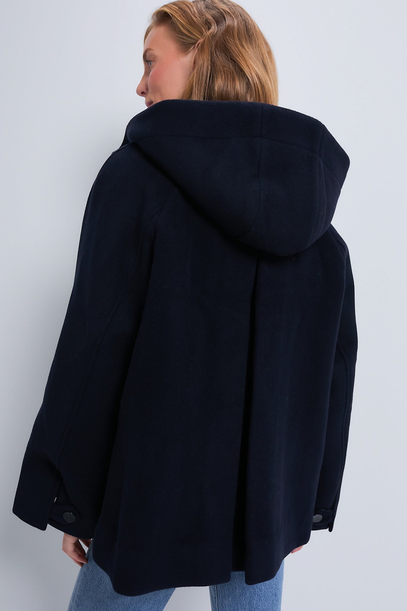 Crafted from a luxurious wool fabric. this coat has us craving cold weather days. With a cozy hood. eye-catching buttons. and front flap pockets. this must-have style is fashionable as it is functional — style with go-to denim and sleek boots for an effortlessly chic outfit formula.