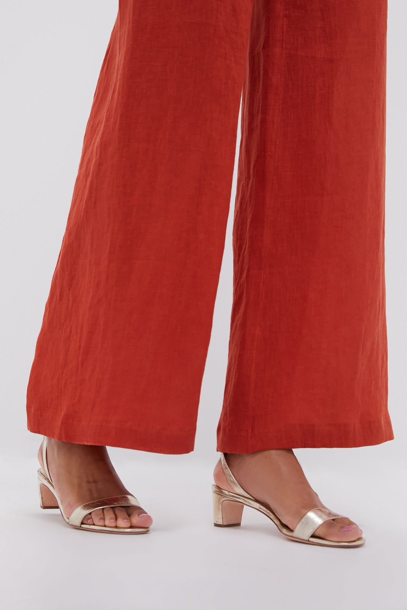 The Terracotta Poesia Pants feature a high rise and flattering wide leg silhouette. The perfect linen vacation pant. we recommend styling with the coordinating Terracotta Baia Top. heels or sandals. a mini bag. and a tan!