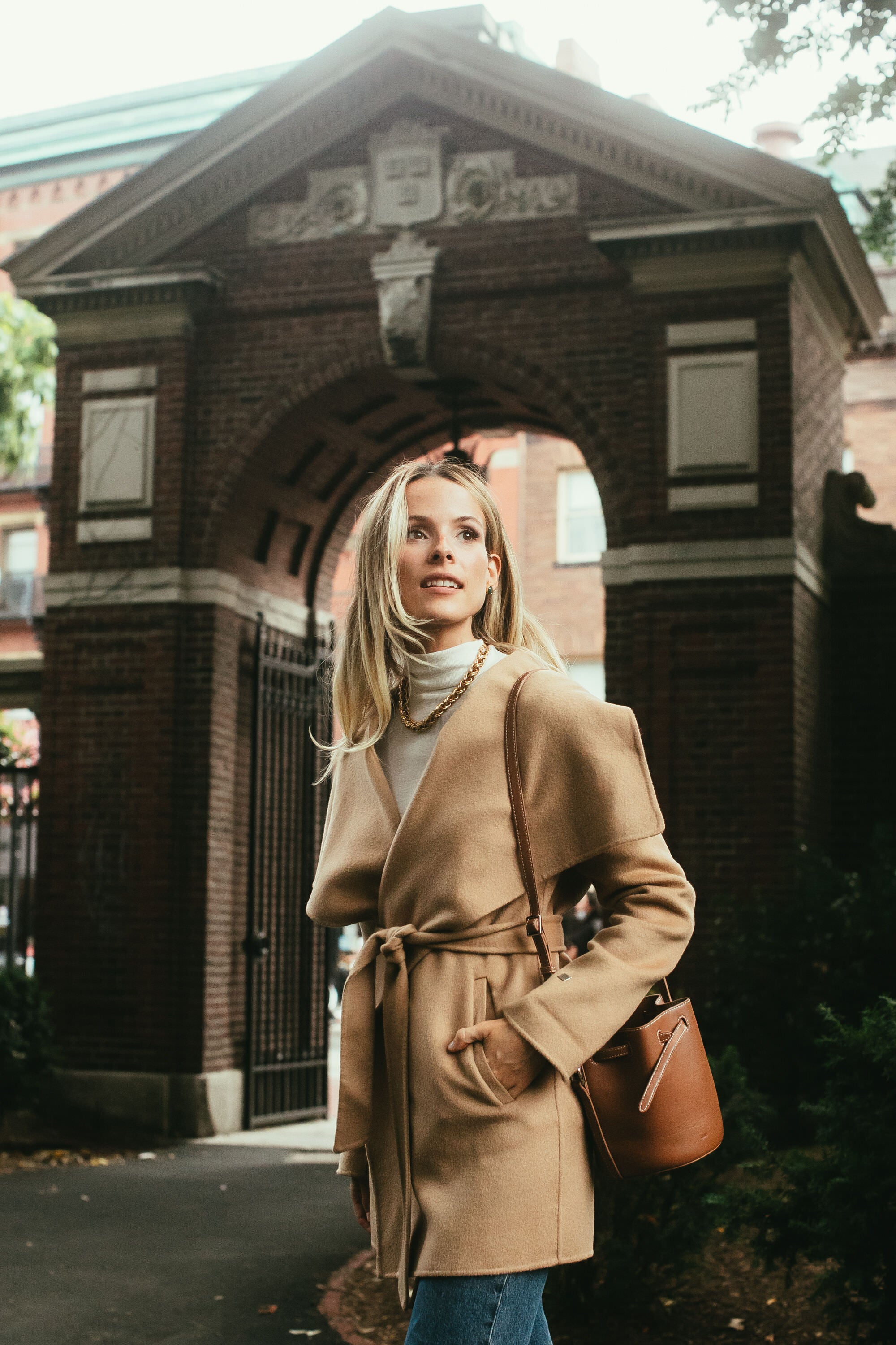 Teddy Brown Belted Clutch Pressed Wool Coat