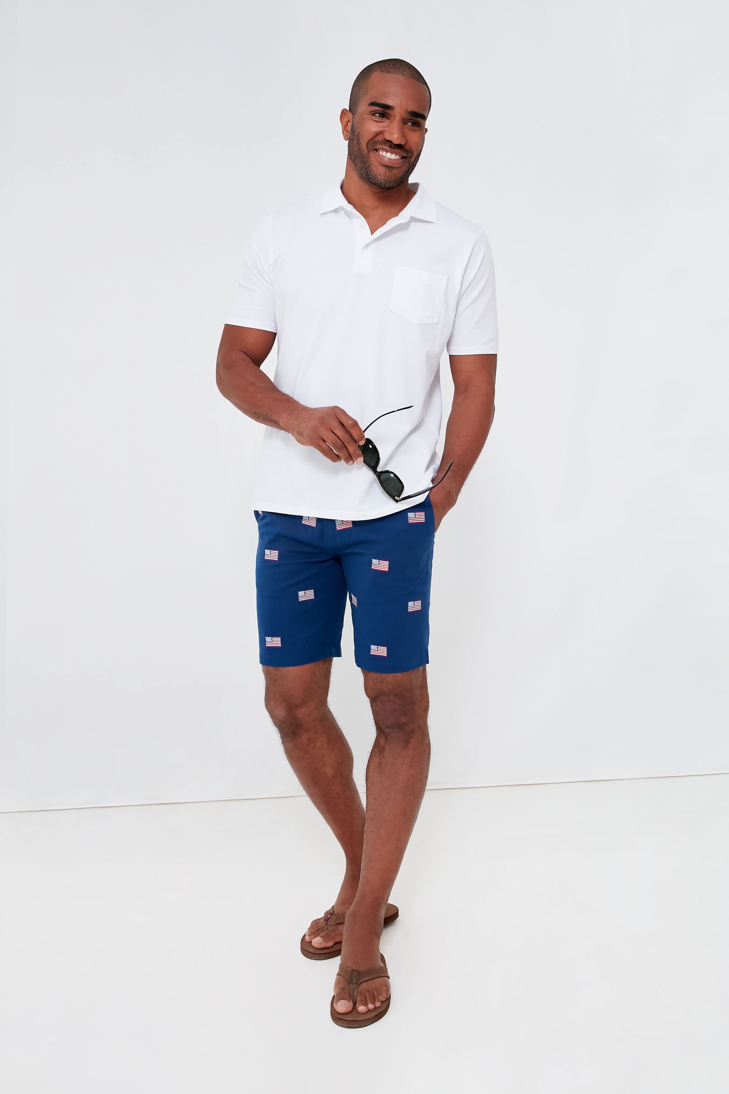 Navy American Flag Embroidered Stretch Twill Cisco Shorts