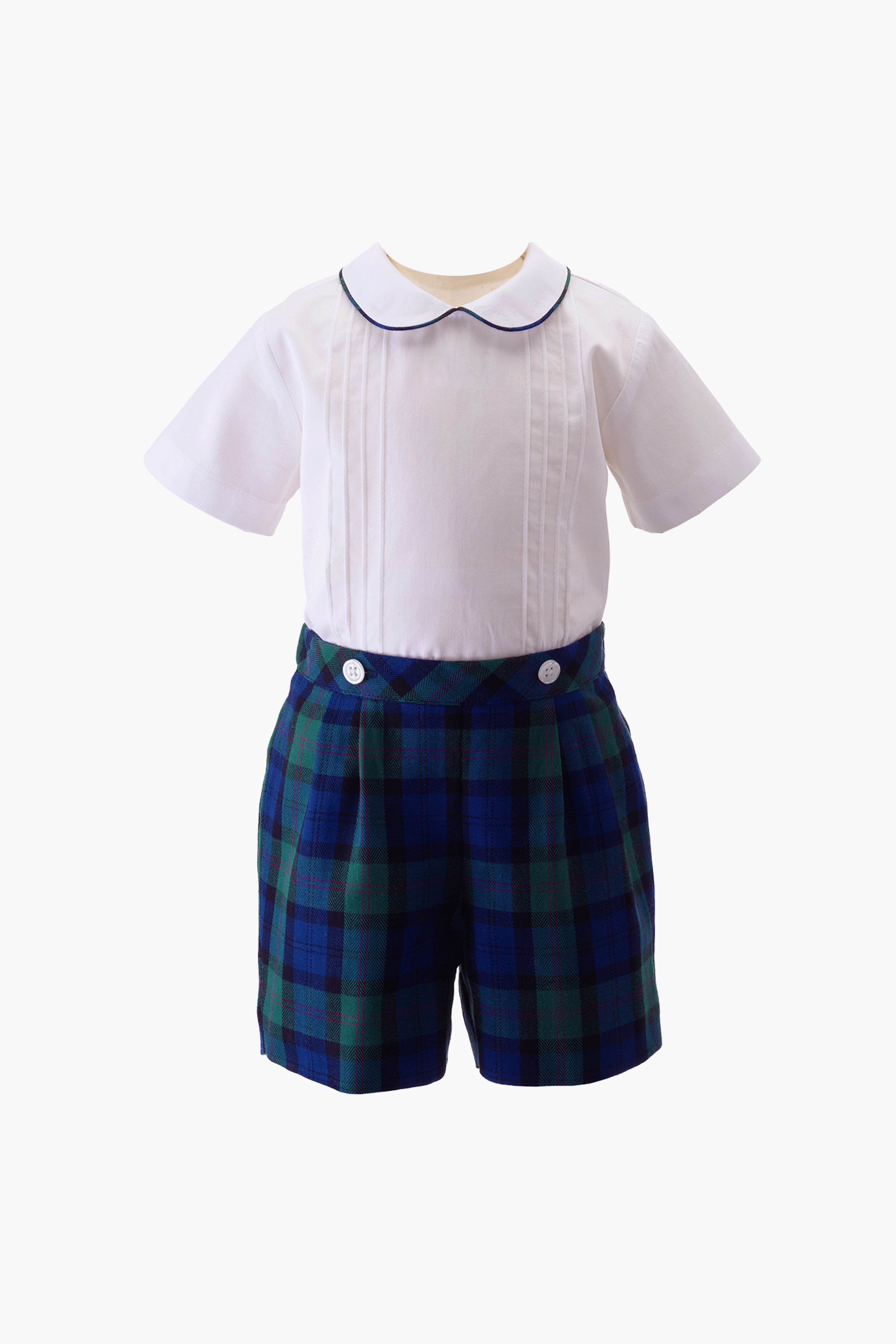 Navy Tartan Shirt and Shorts Set