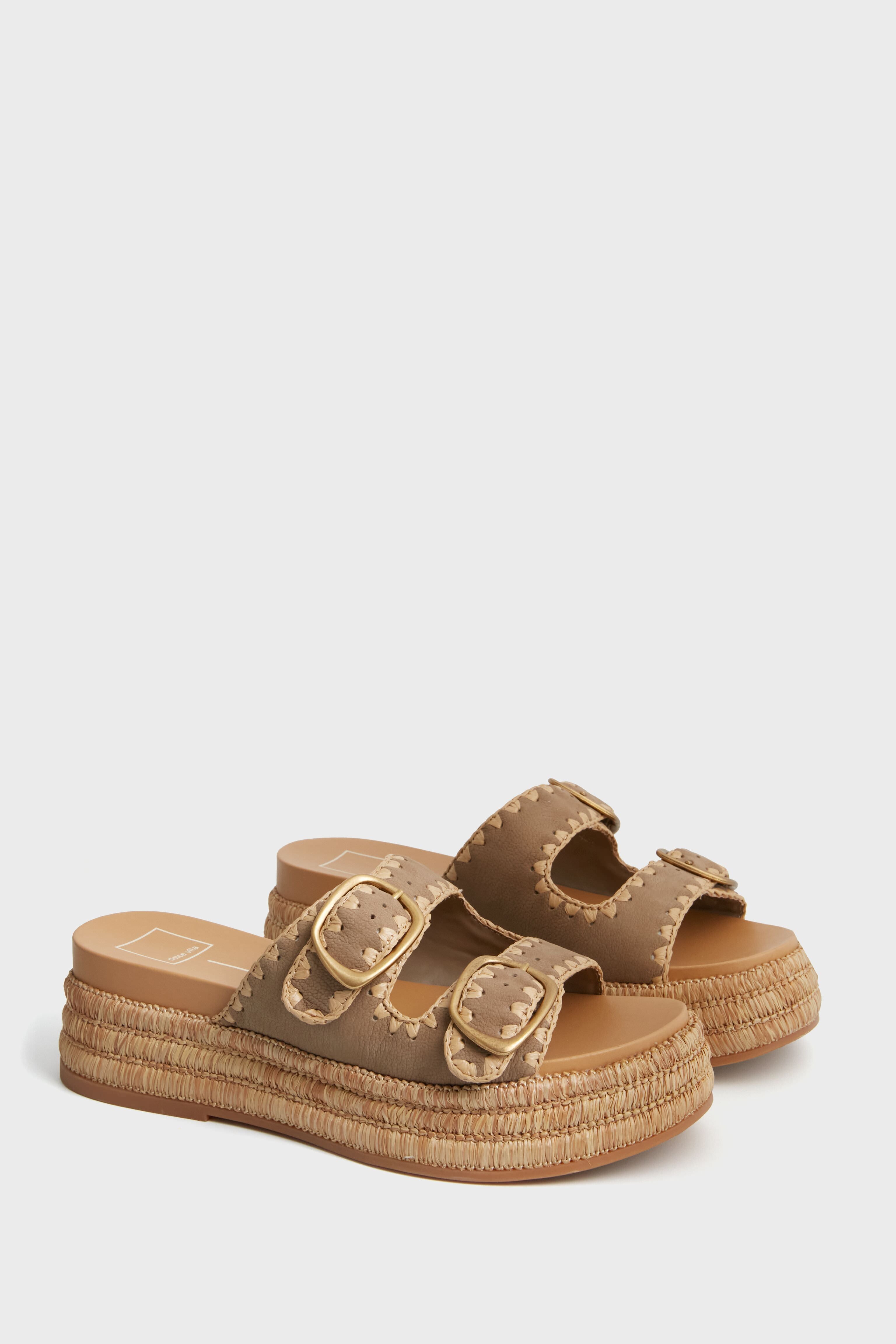 Earthy meets edgy. The Almond Wanika Sandals pair buckle detailing with boho-chic raffia. creating a cool juxtaposition that is just as at home at the beach resort as it is in the city. Pair with frayed denim pants and a button down. or with a relaxed sundress.