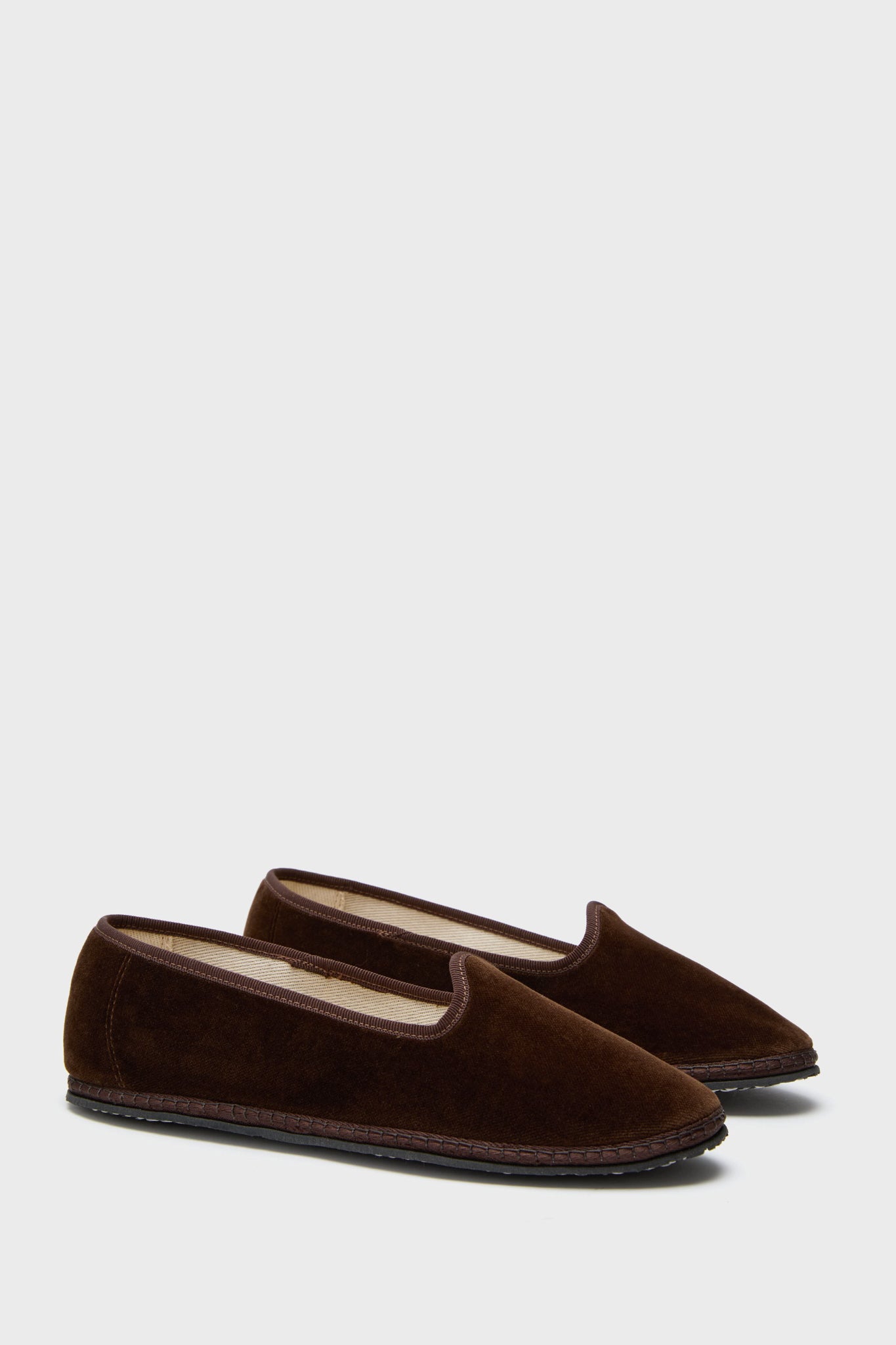 Material: Velvet (upper). Rubber (sole)