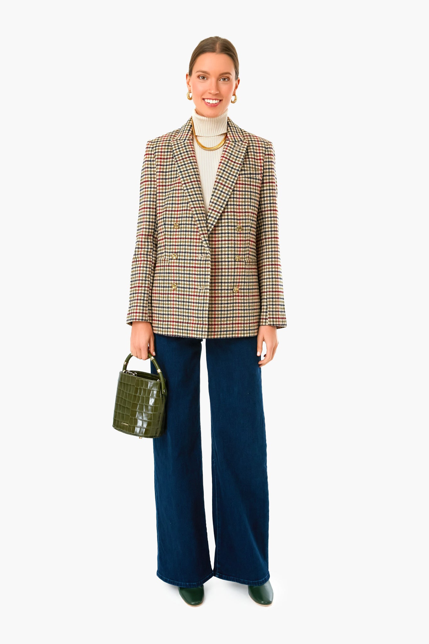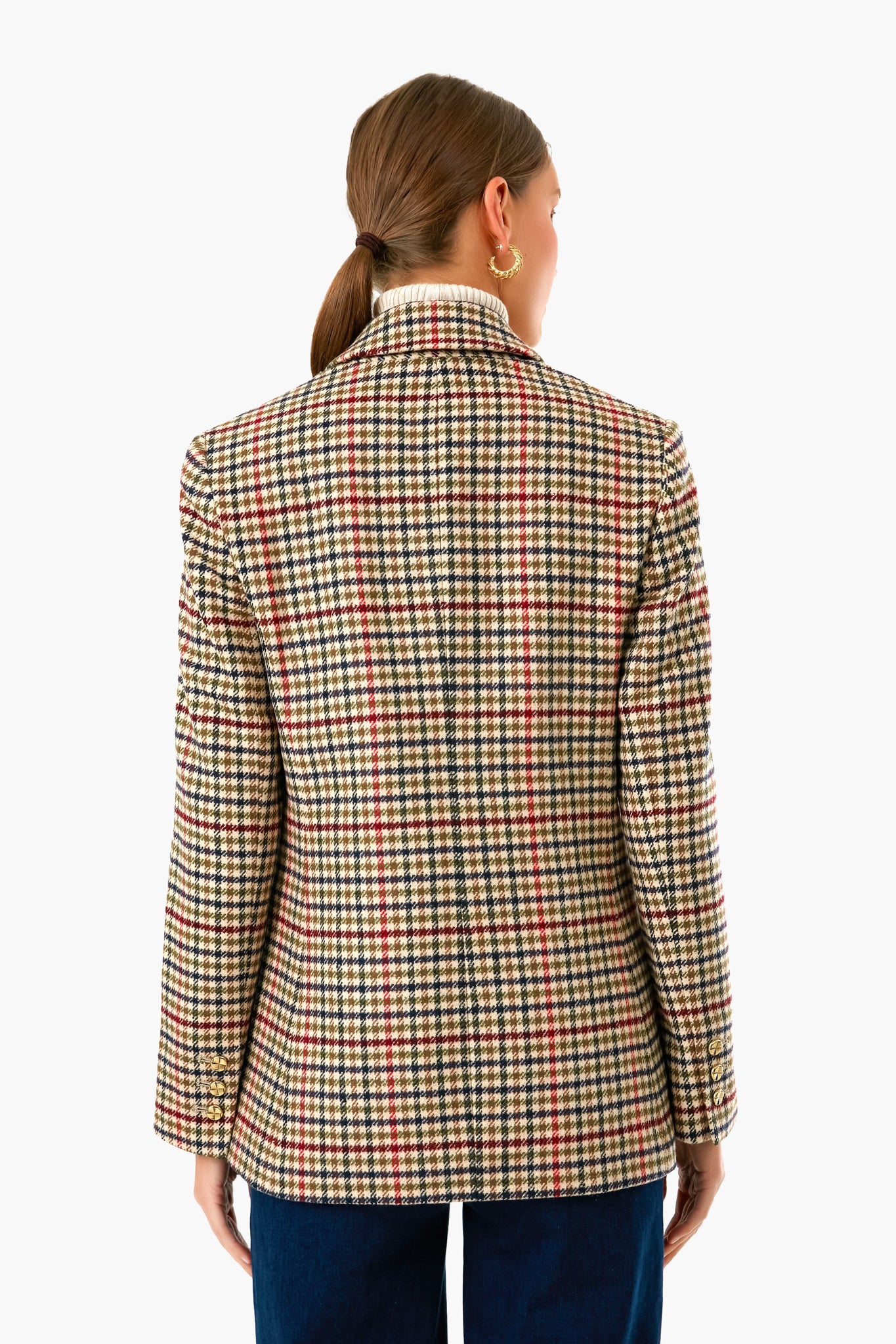 The Diana Blazer is back in an updated fall houndstooth pattern. Inspired by one of the greatest style icons. Princess Diana. this coat is made with thoughtful details for the perfect fit. Featuring an oversized double-breasted silhouette. notched lapels. and gold buttons. this looks like it was borrowed from another decade and updated for now. Coming back in a thick. but soft flannel fabric for cooler days. this favorite style pairs effortlessly with trousers or denim for a truly timeless look that will take you from the office to drinks with friends after hours!