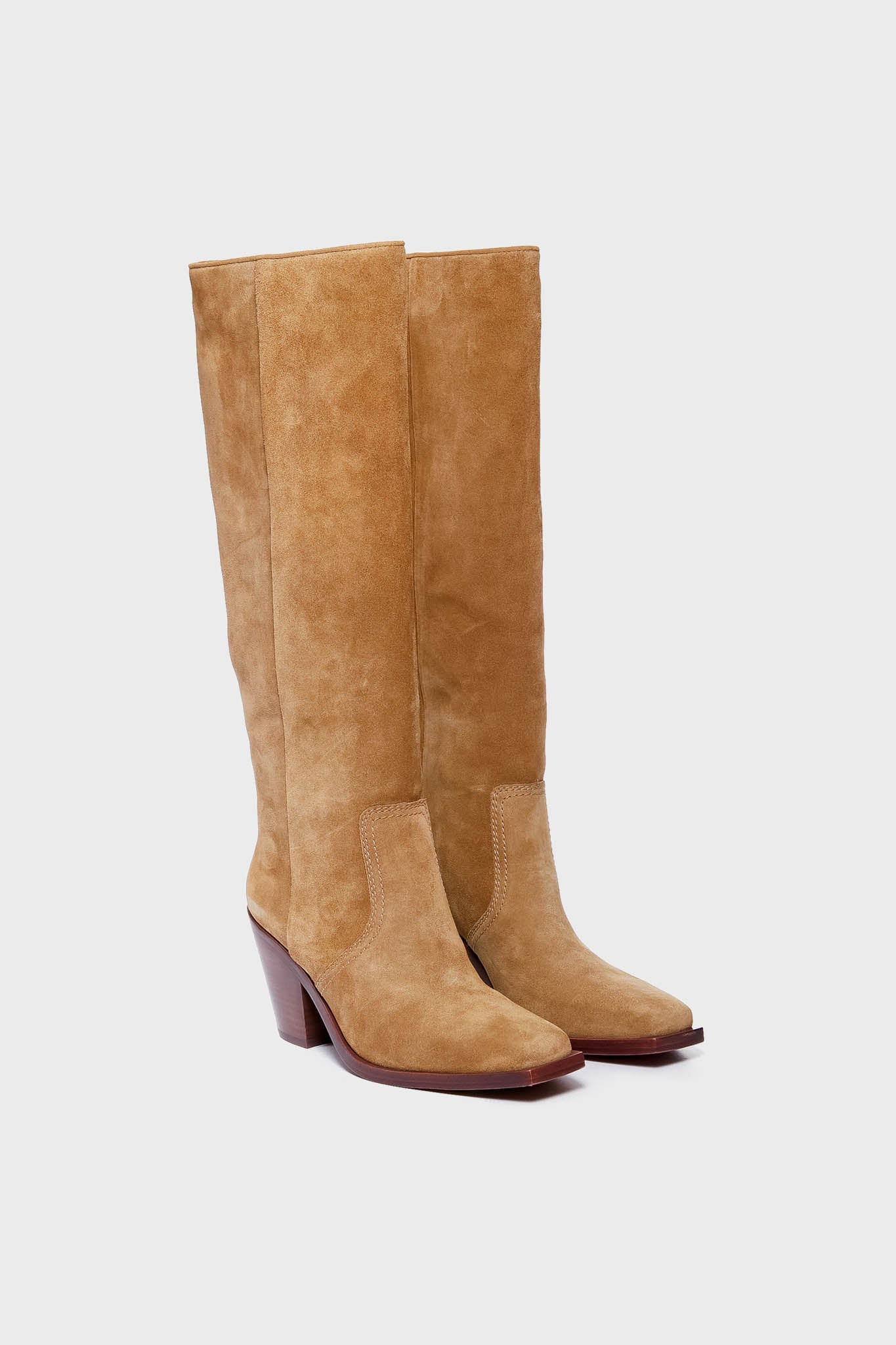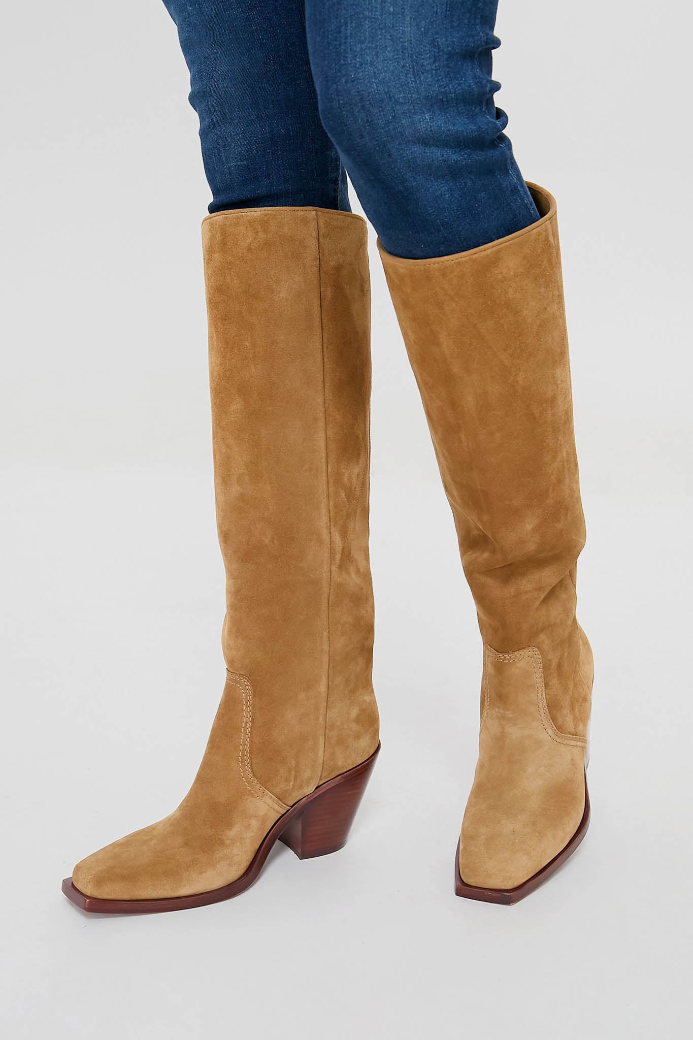 Add a hint of Western flair with the Bisque Lynn Boots. In a chic and sleek knee length construction. these split suede stunners feature a squared toe and a padded footbed for ultimate comfort. as well as a block heel that gives you just enough extra height. Pair with bohemian mini dresses for an outfit full of cool contrast. or with denim and a cozy flannel for an updated cowgirl-inspired look that is fun and fresh.