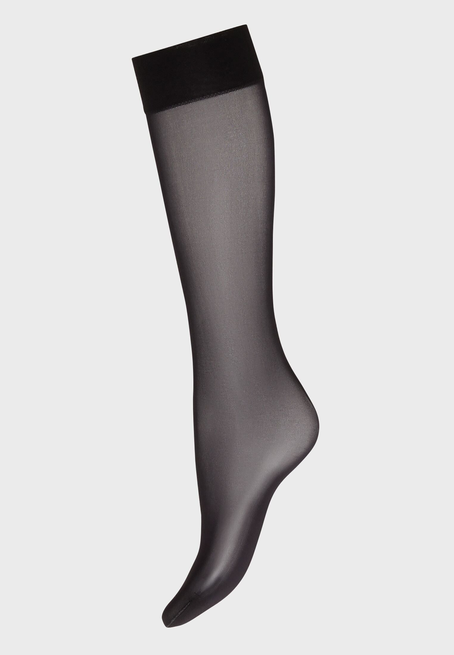 The perfect addition to a discreet outfit. the Black Individual 10 Knee Socks are light as a feather and ultra-chic. Complete with a wide band at the leg opening for a comfortable feel. and a reinforced toe for security inside your shoes. this sheer style is a must-have. For a subtle cool factor. pair these with a pleated skirt or under a maxi dress for the illusion of tights!