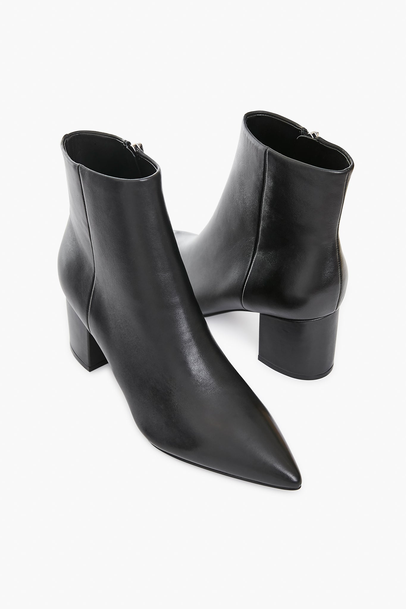 The Black Leather Jarli Boots feature a classic pointed toe and block heel. Made from a leather upper. these are a modern update to the traditional bootie. A wardrobe staple. these pair with everything from dresses to denim for any occasion.
