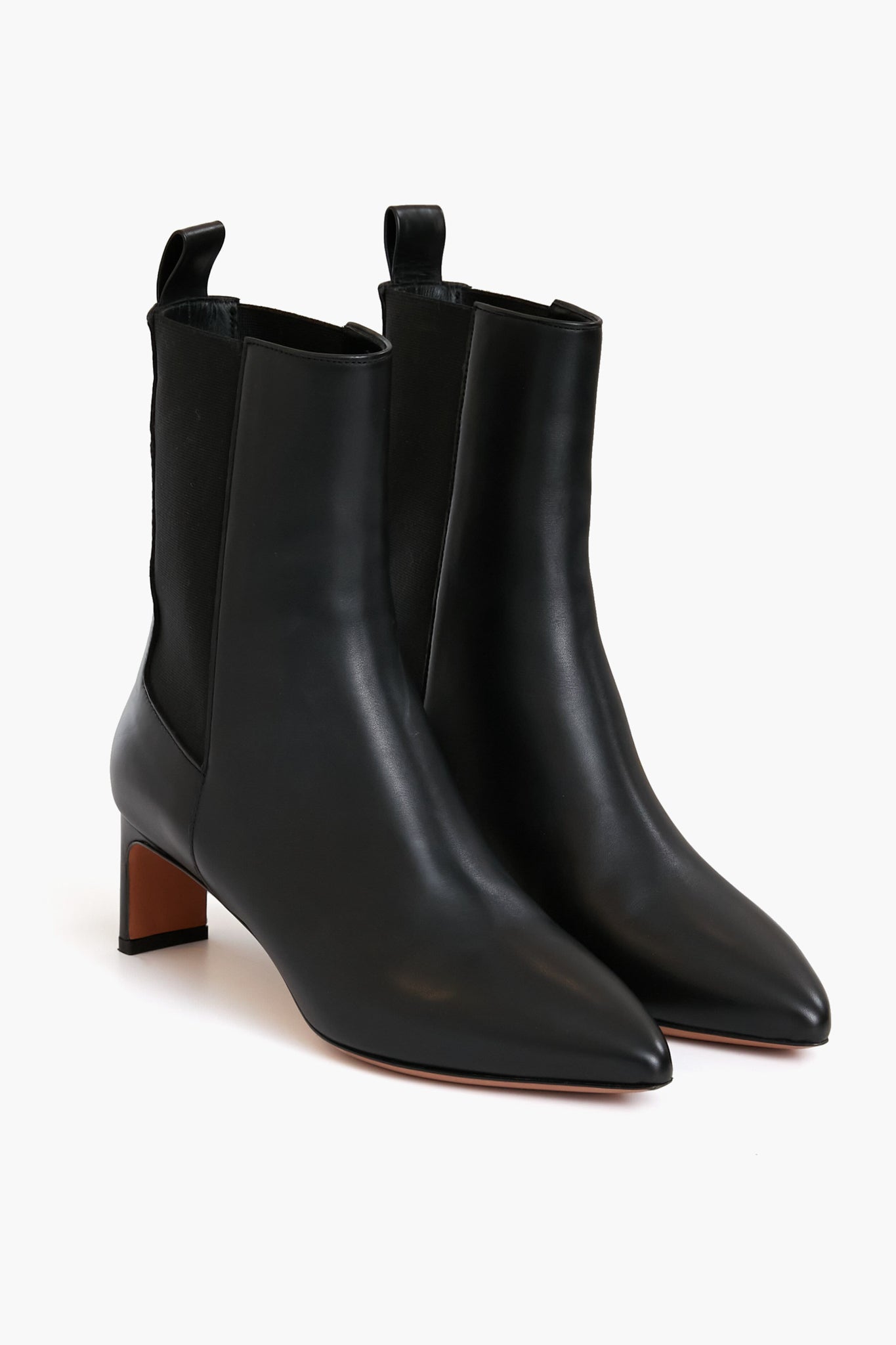 A truly timeless style. the Black Lou Ankle Boots are a modern take on a classic. With a pointed toe. a thin block heel. and an ankle-height shaft. this silhouette is effortlessly feminine with a bit of an edge. These leather beauties look great with just about anything due to their versatility. so try them with midi dresses. denim. or a mini skirt.