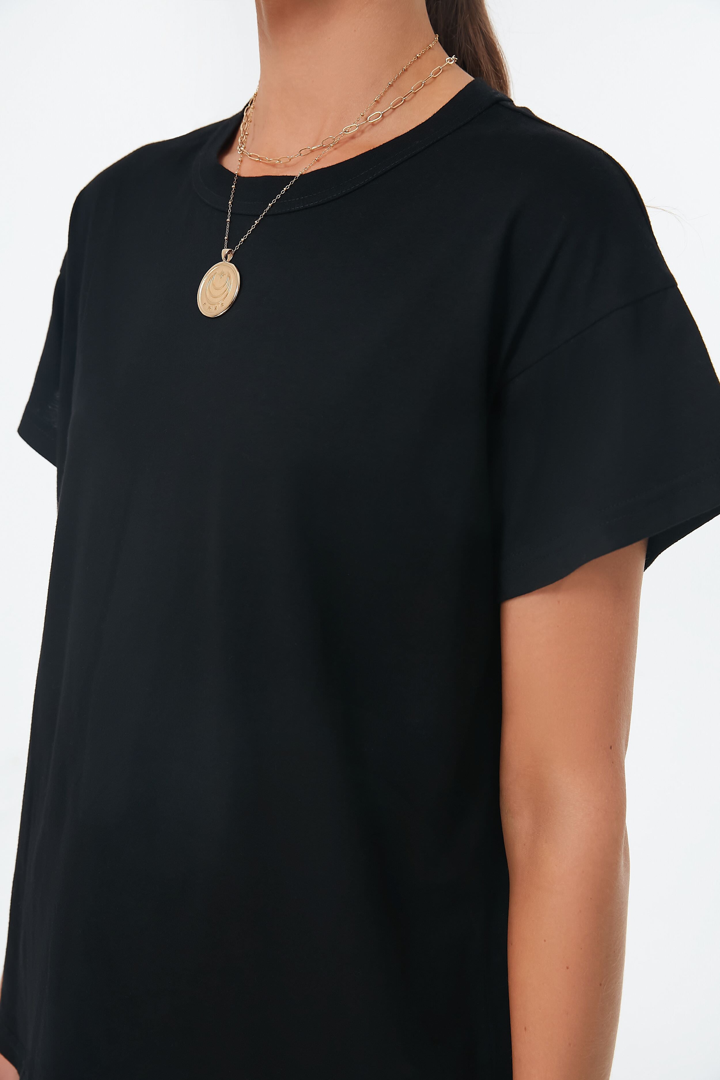 In search of a traditional tee that stands the test of time? Look no further than the Presley. Featuring a crewneck. short wide sleeves. and a relaxed fit that can be tucked in or out to achieve any look. this top is for those days when you just don't know what to wear. Throw on a pair of denim. a mini skirt. leather trousers– you name it– the possibilities are endless for this classic wear everywhere number.