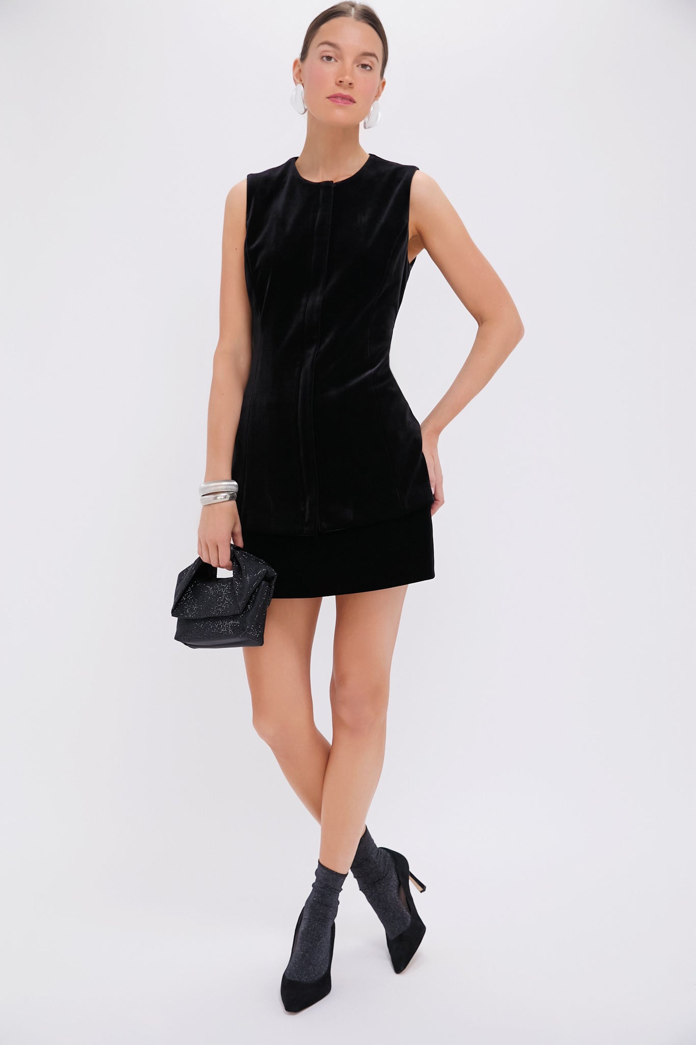 The Black Silver Stardust Socks are the perfect accessory to add to your winter wardrobe. The metallic sparkle details catch the light against a plush. knit background. We recommend pairing with a black cocktail dress. heels. and a clutch for your next occasion!