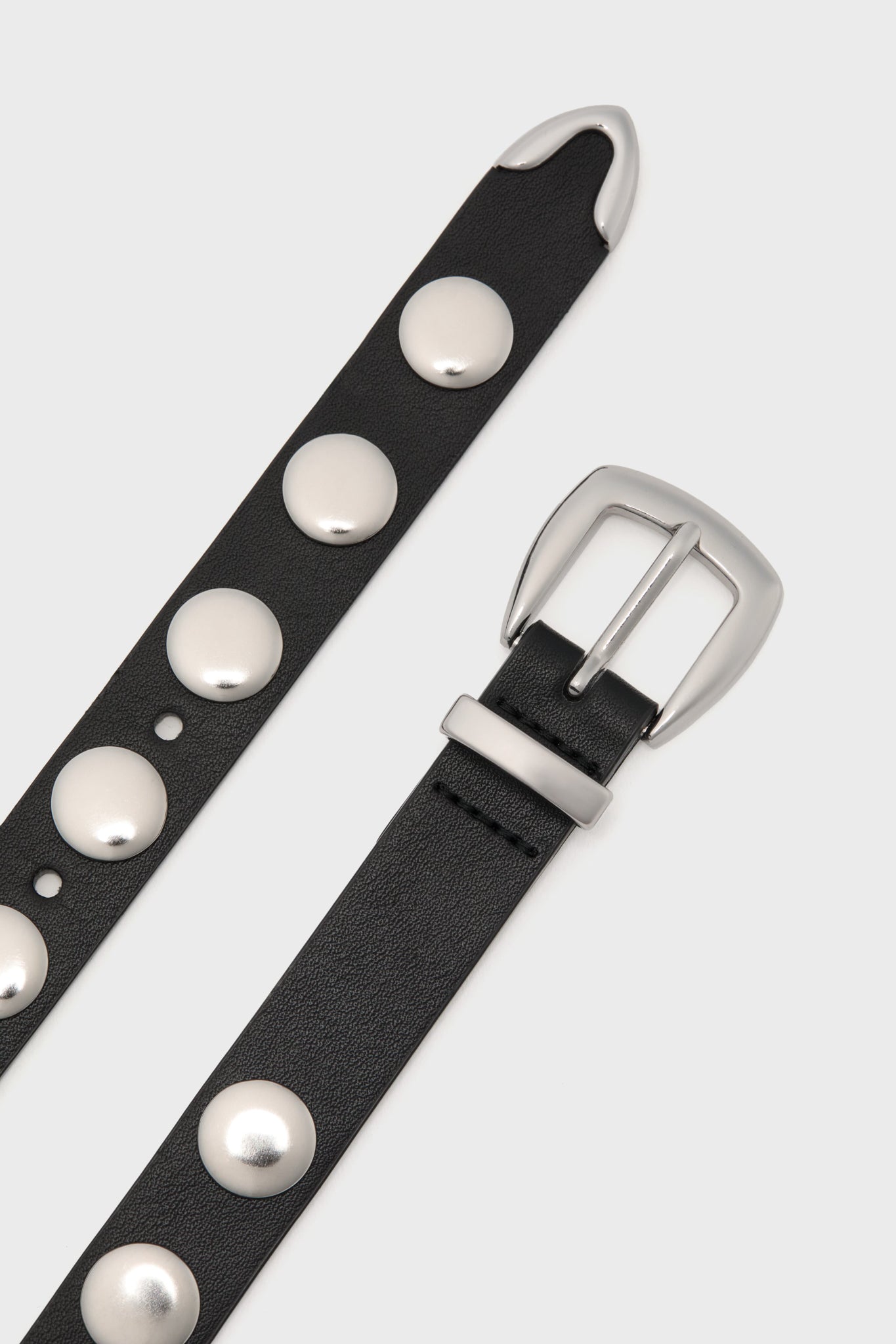The Black Studded Disc Belt adds a bit of edge to any outfit. Perfect for dressing up your daily jeans and a tee look. we recommend pairing with a fun denim and a polo shirt for a polished. yet edgy look!
