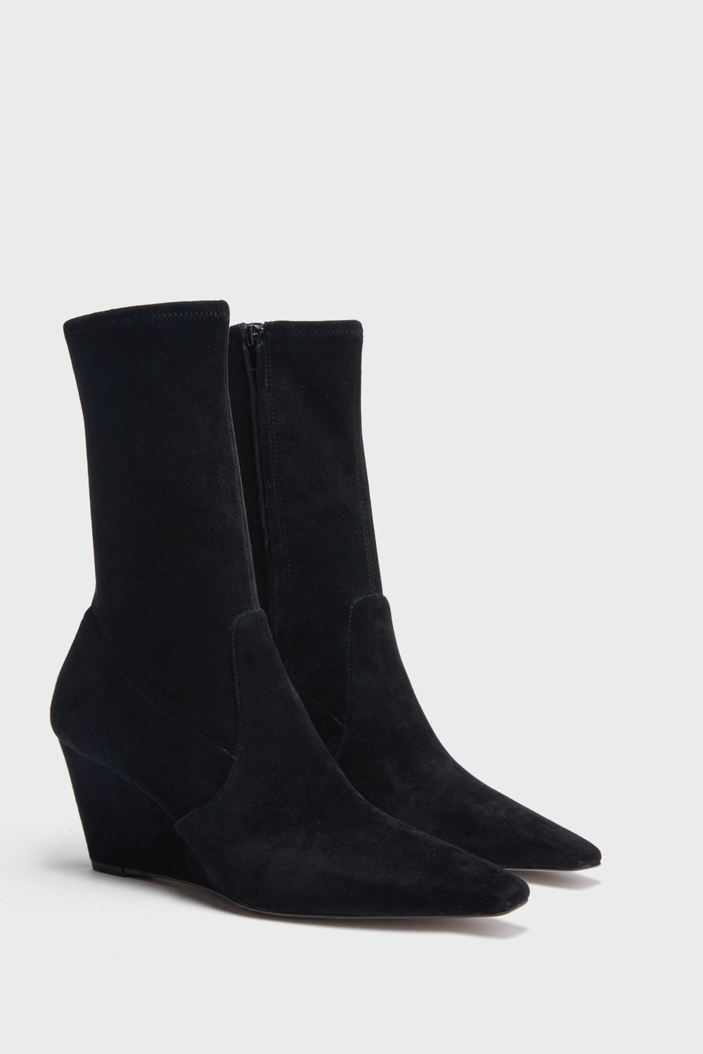 The Delta Boots boast an ankle-length construction with a comfortable wedge heel and elegant elongated square toe. Perfect for pairing with everything in your closet. we are opting for wide leg denim and sweaters or easy maxi dresses and skirts.