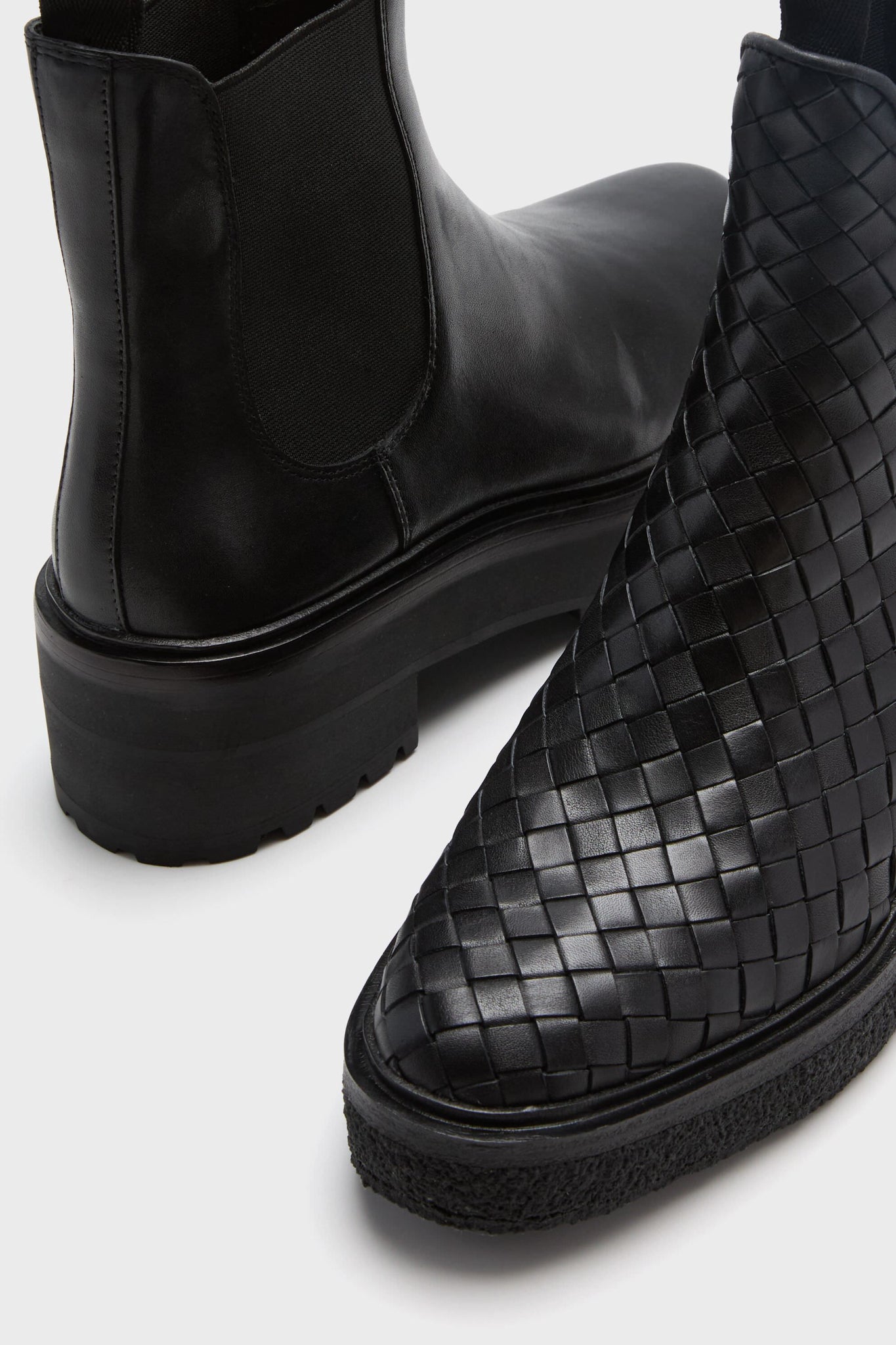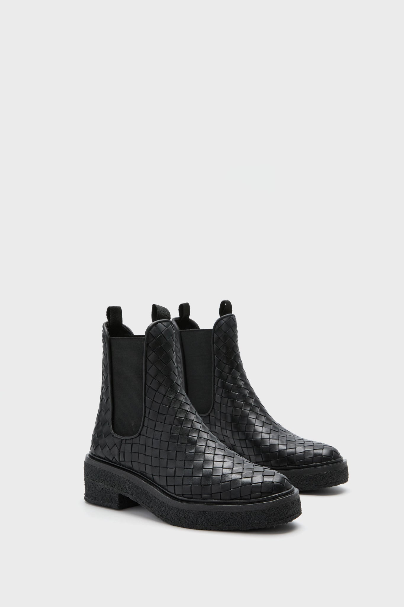 These spunky and chic shoes boast a crepe sole. elastic ankle panels. and a rounded toe. The woven construction adds a subtle. chic touch. making these a perfect addition to your everyday wardrobe. Pair with an LBD and shoulder bag for nights out. or with wide leg denim and a button down for coffee dates.