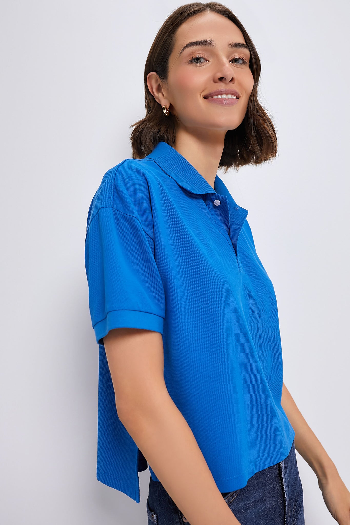 We are loving the Holmes Polo for its relaxed "From His Closet" fit and subtly-luxe details. This boxy silhouette features a thick knit collar. a high-low hem that lands right at the pants line for easy tucking. and the ultra-soft pique fabric that we know and love. A fresh update to your classic polo. with the same versatility. we are pairing this with anything and everything in our closet.